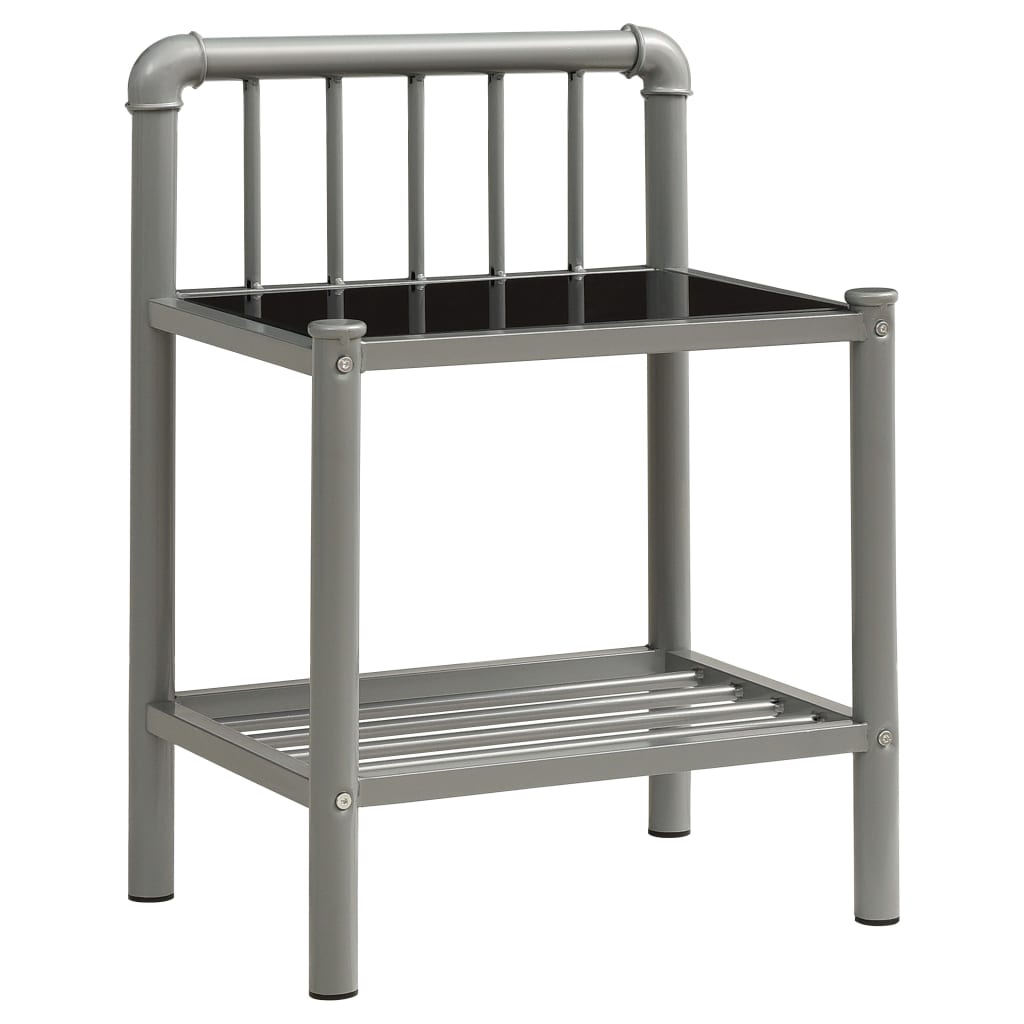 Table de chevet Gris et noir 45x34,5x62,5 Métal et verre