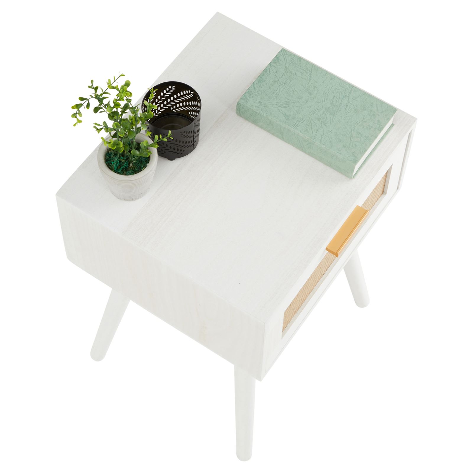 - La structure de la table de nuit est en bois de paulownia blanc.
