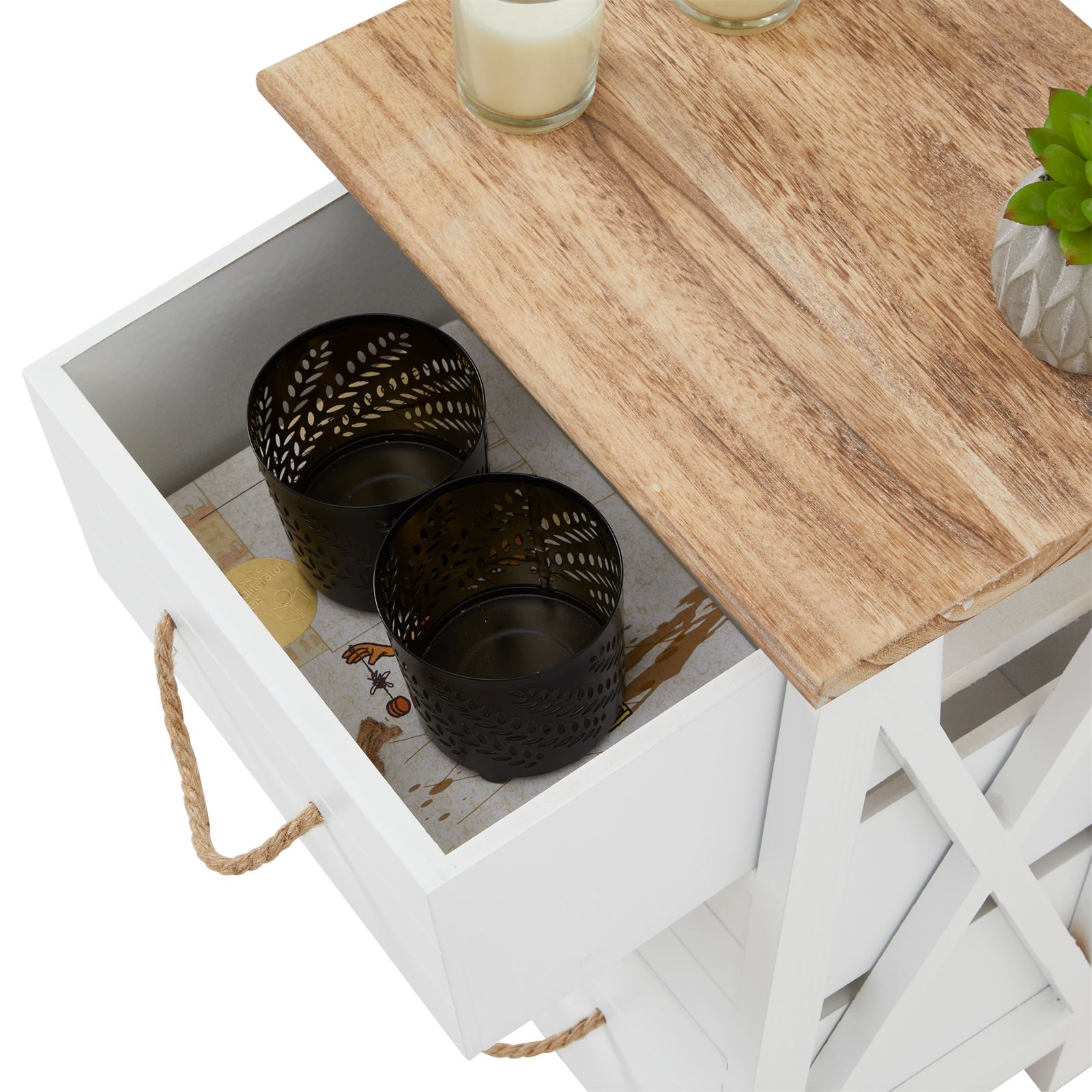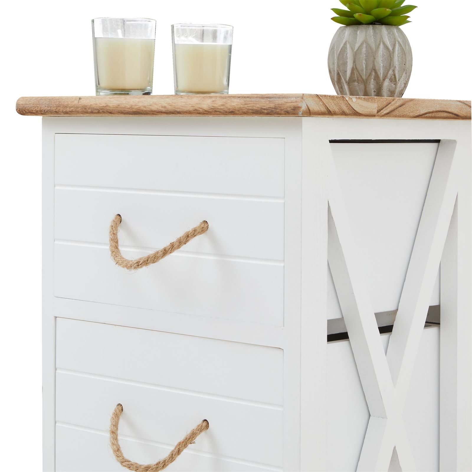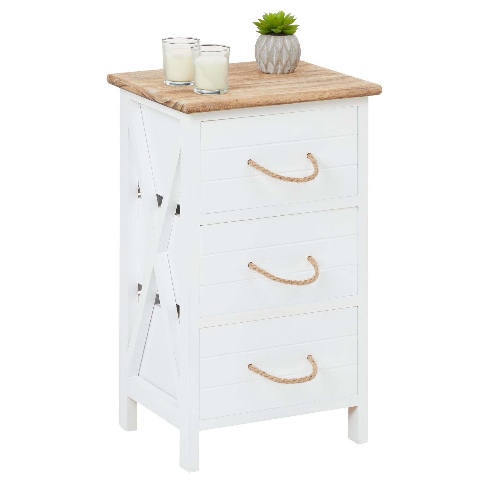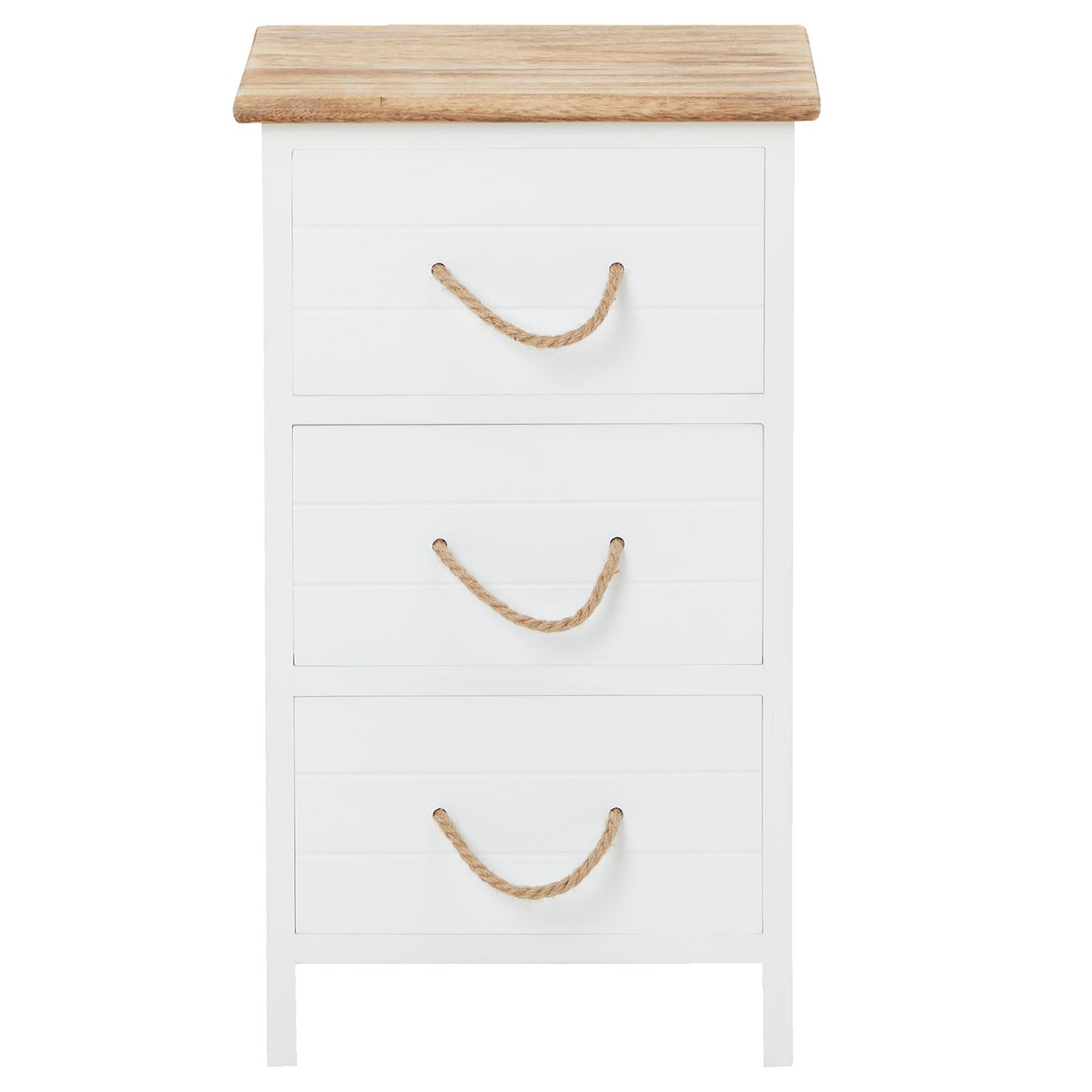 | Plus produit | Les 3 tiroirs de coloris blanc, avec poignée décorative en sisal, offrent chacun suffisamment despace de rangement pour garder vos affaires personnelles à portée de main |