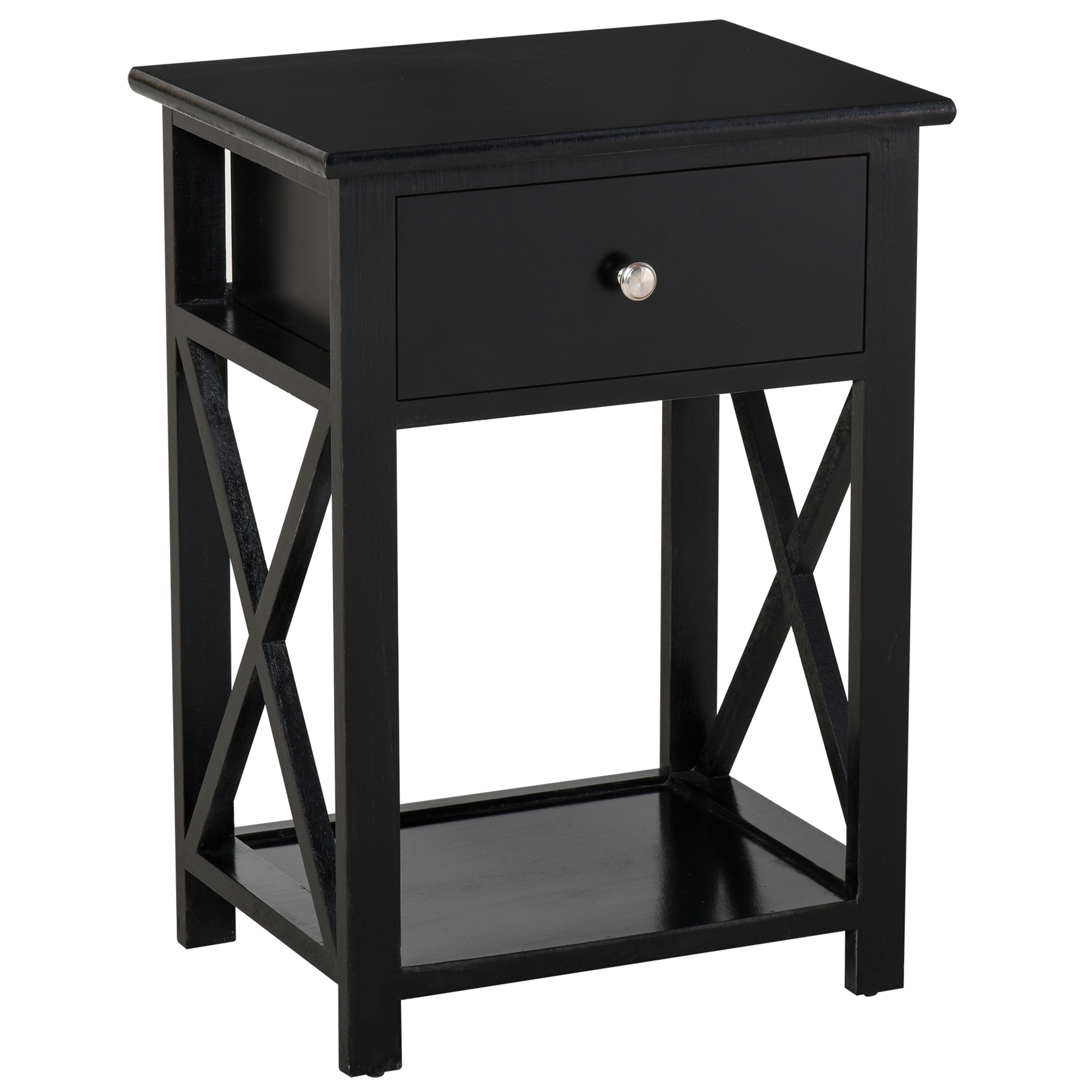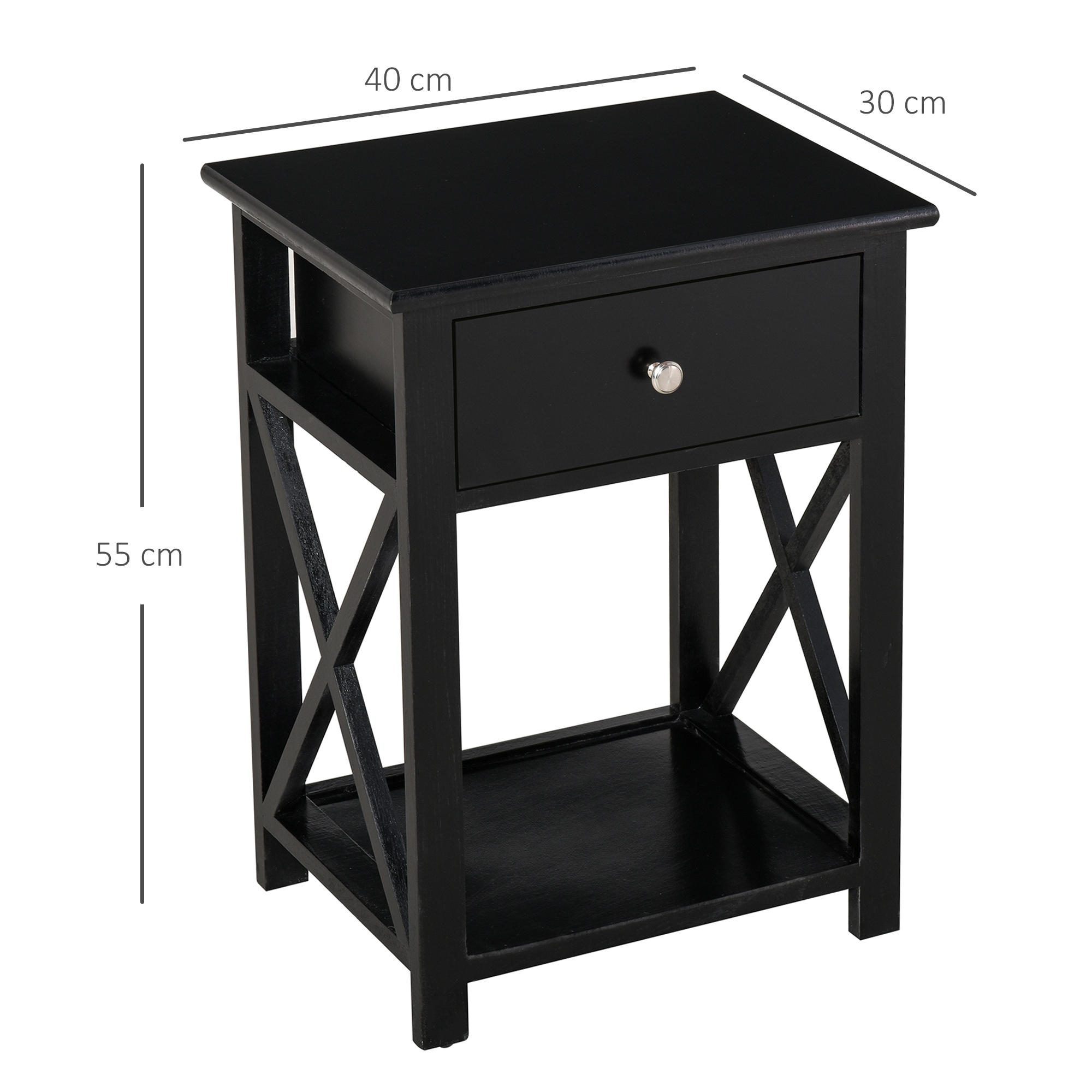 | Libellé | Table de chevet table de nuit style cosy avec croix latérales tiroir et étagère bois et MDF noir |
