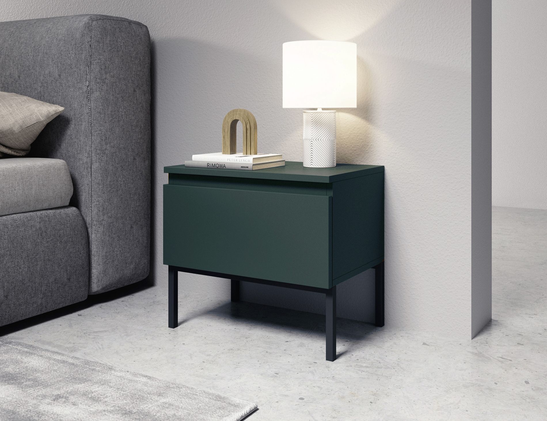 Table de chevet vert foncé avec pieds noirs BEMMI