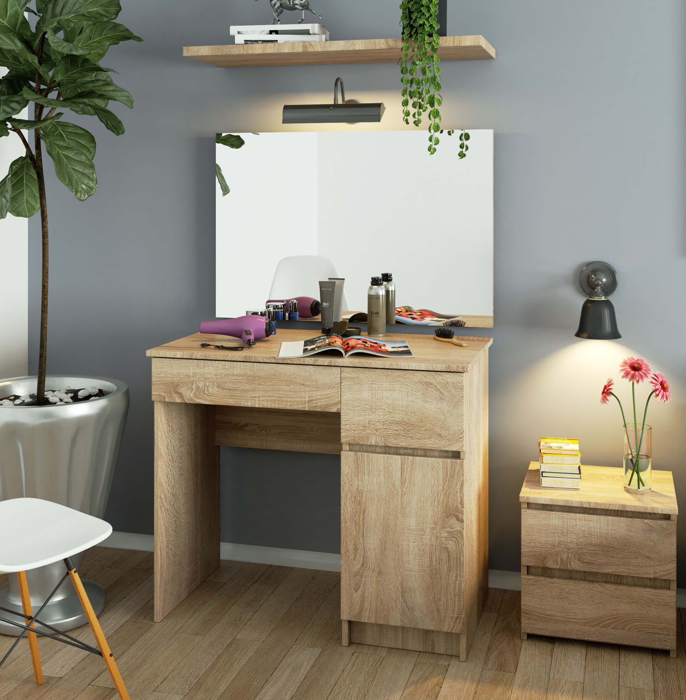 Table de coiffeuse AKORD droite, avec miroir Chêne Sonoma 90 cm 1 porte 2 tiroirs façade Chêne Sonoma 2 é