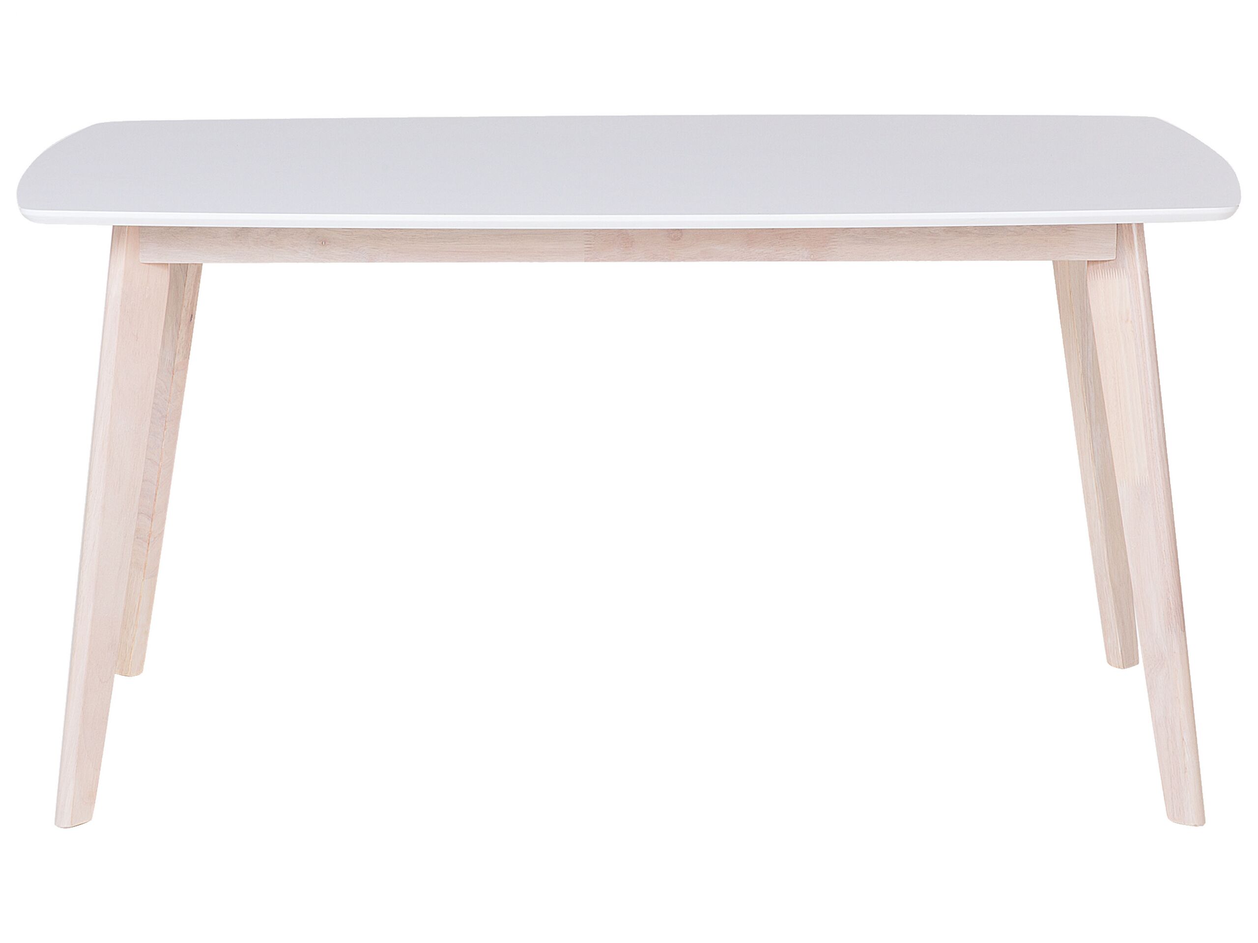Table de salle à manger ou de cuisine. La table de salle à manger allie à la fois l'élégance et la fonctionnalité. Le plateau contemporain en MDF massif présente des bords légèrement arrondis qui lui confèrent un aspect remarquable. Le plateau épais, blanc neige, complété par des pieds élancés en bois d'hévéa, apporte une touche de fraîcheur à votre intérieur. Cette table peut accueillir jusqu'à 6 personnes. Elle convient à une salle à manger ou à une cuisine, mais peut également servir de bureau. Les matériaux très durables et résistants à l'humidité garantissent un entretien facile.