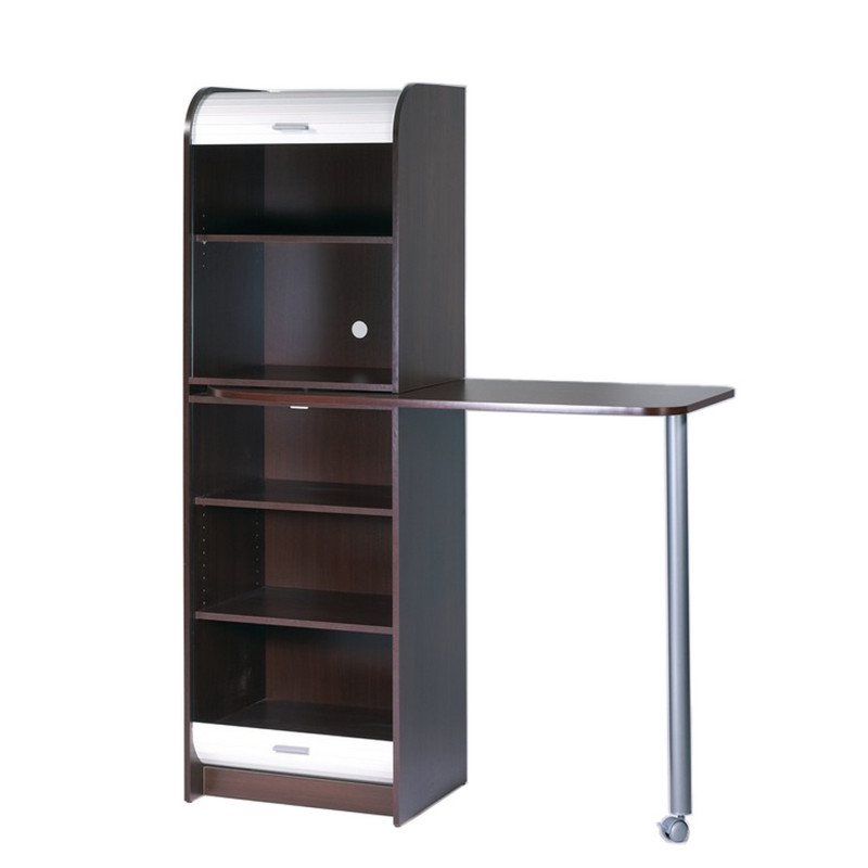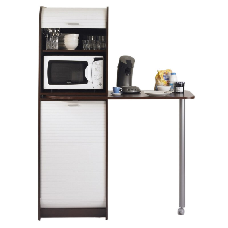 Table de Cuisine et Meuble Rangement 5 Niches - Coloris: Wengé + Blanc