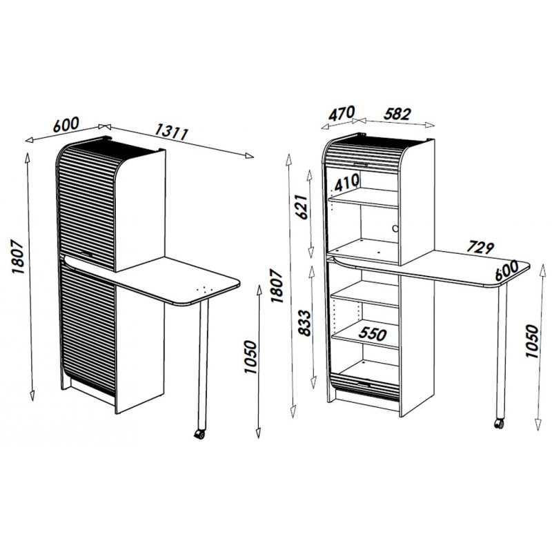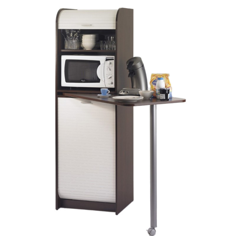 Meuble de cuisine 2 rideaux équipé d'une table pivotante.