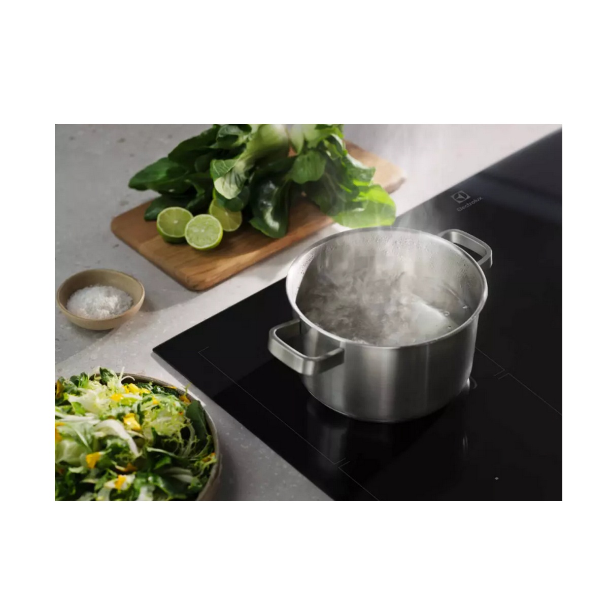 Grâce au système Hob2Hood, plus besoin de régler votre hotte, la plaque de cuisson s'occupe de tout. Une fois la plaque active, l'éclairage de la hotte s'enclenche et les capteurs thermique adaptent la puissance d'aspiration.