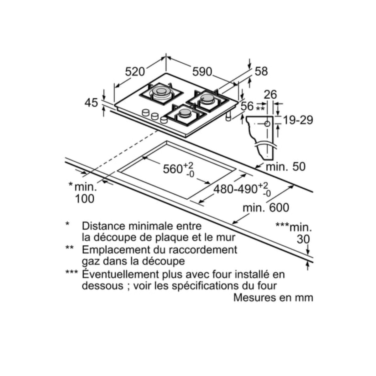 | Libellé | Table de cuisson gaz 60cm 3 feux 8000w iq500 - EP6A6CI10 - siemens |