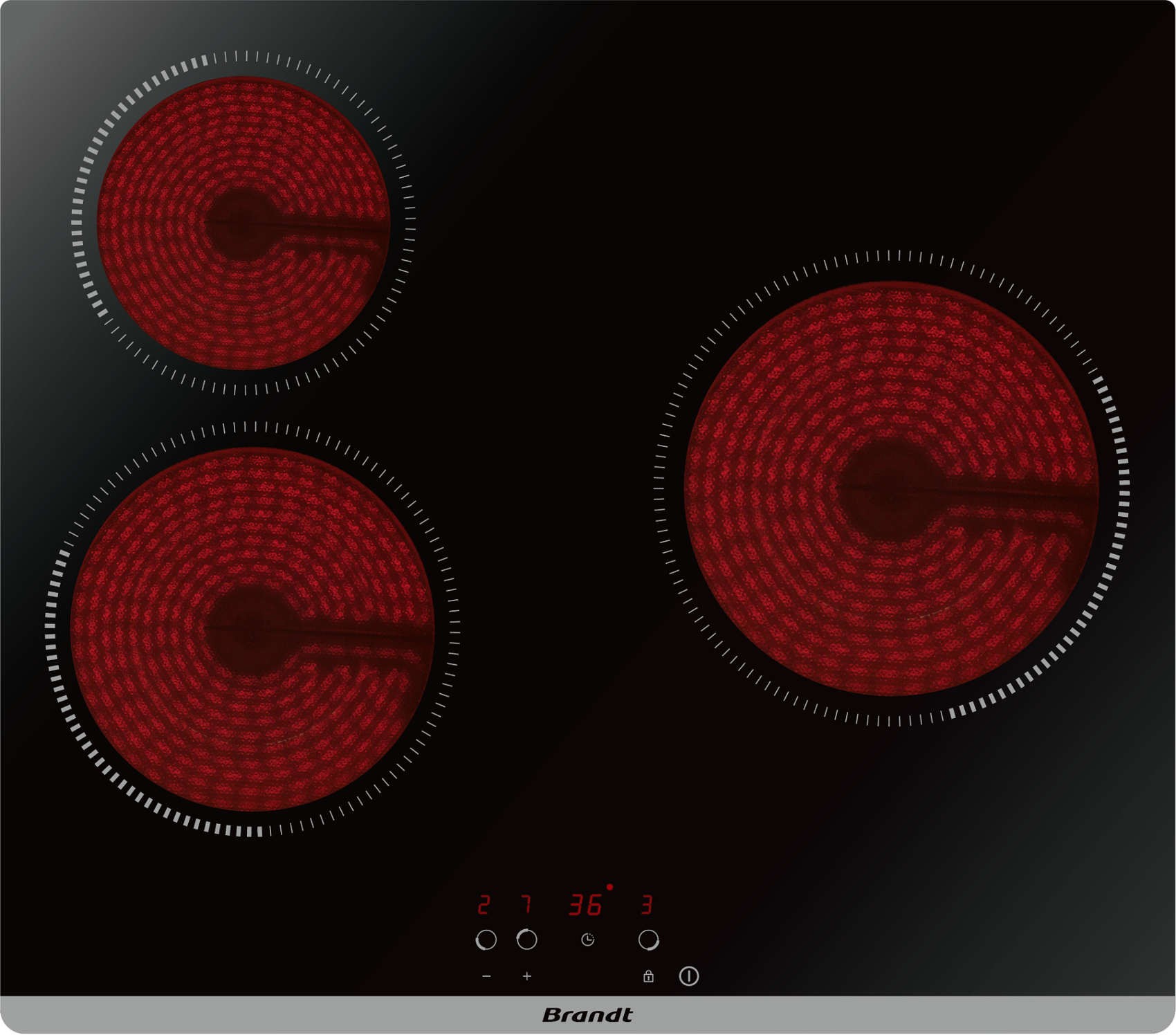 Table de cuisson vitrocéramique 60cm 3 feux 5300w noir - bpv6320b - brandt