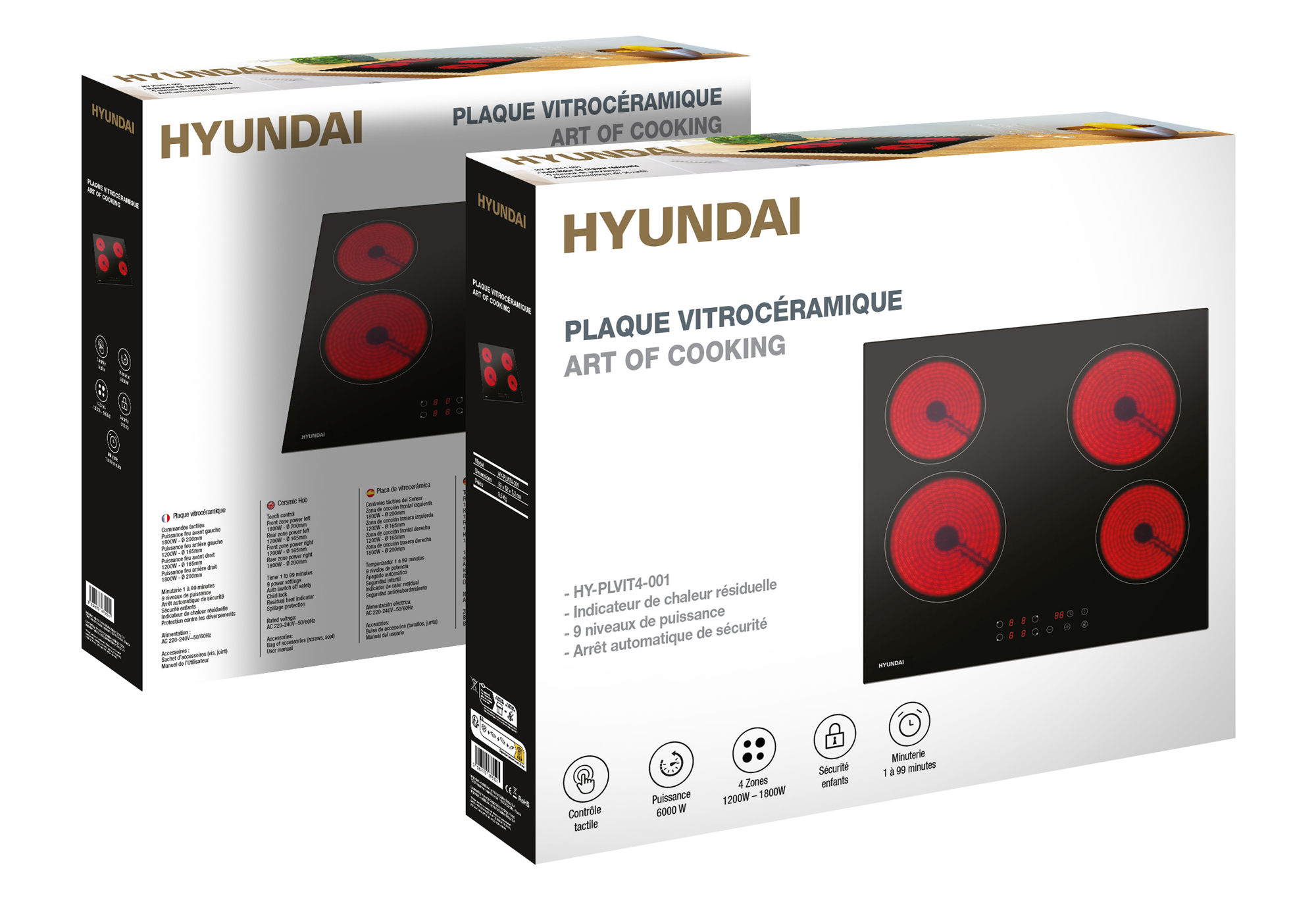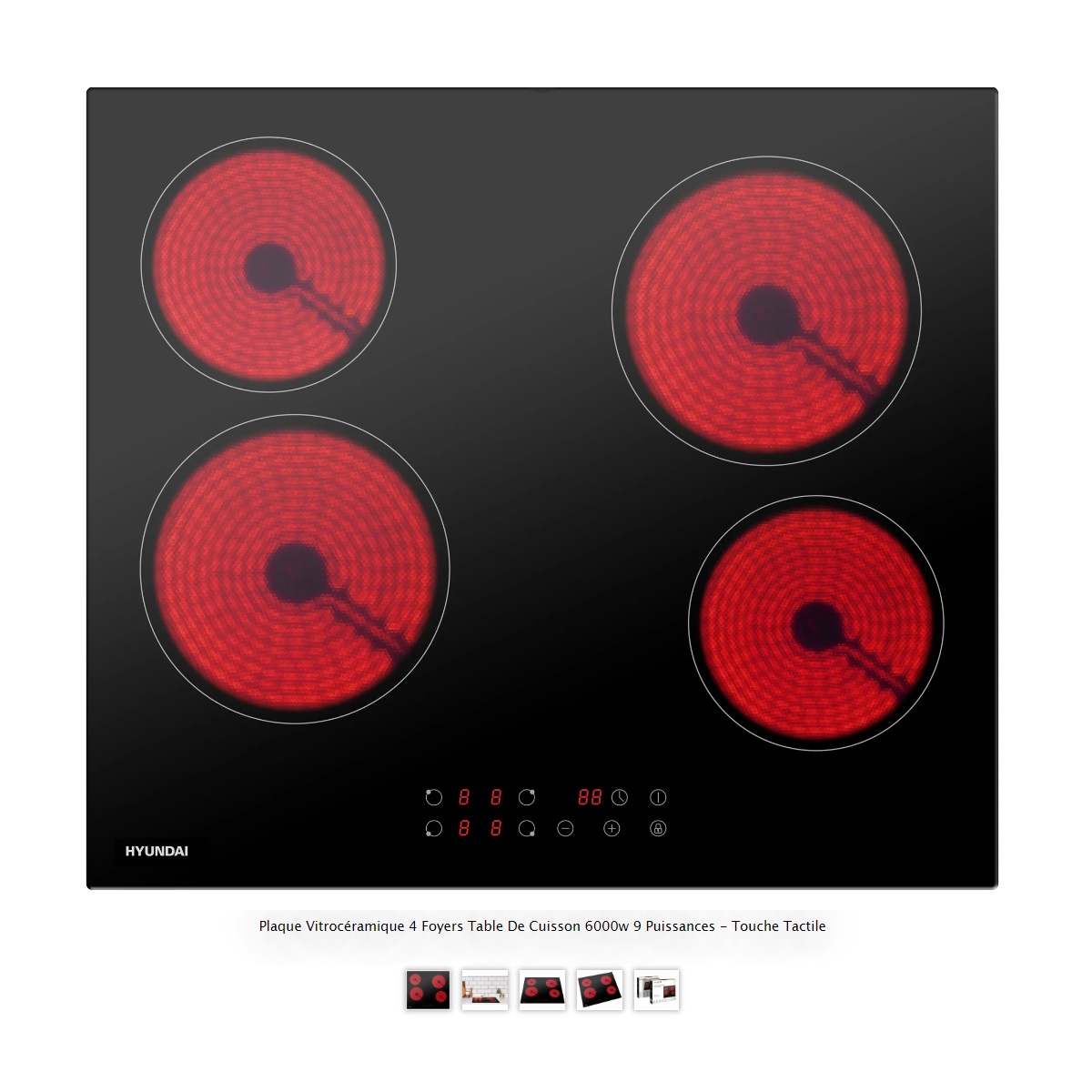 | Libellé | Table de cuisson vitrocéramique 60cm 4 feux 6000w noir - HY-PLVIT4-001 - hyundai |