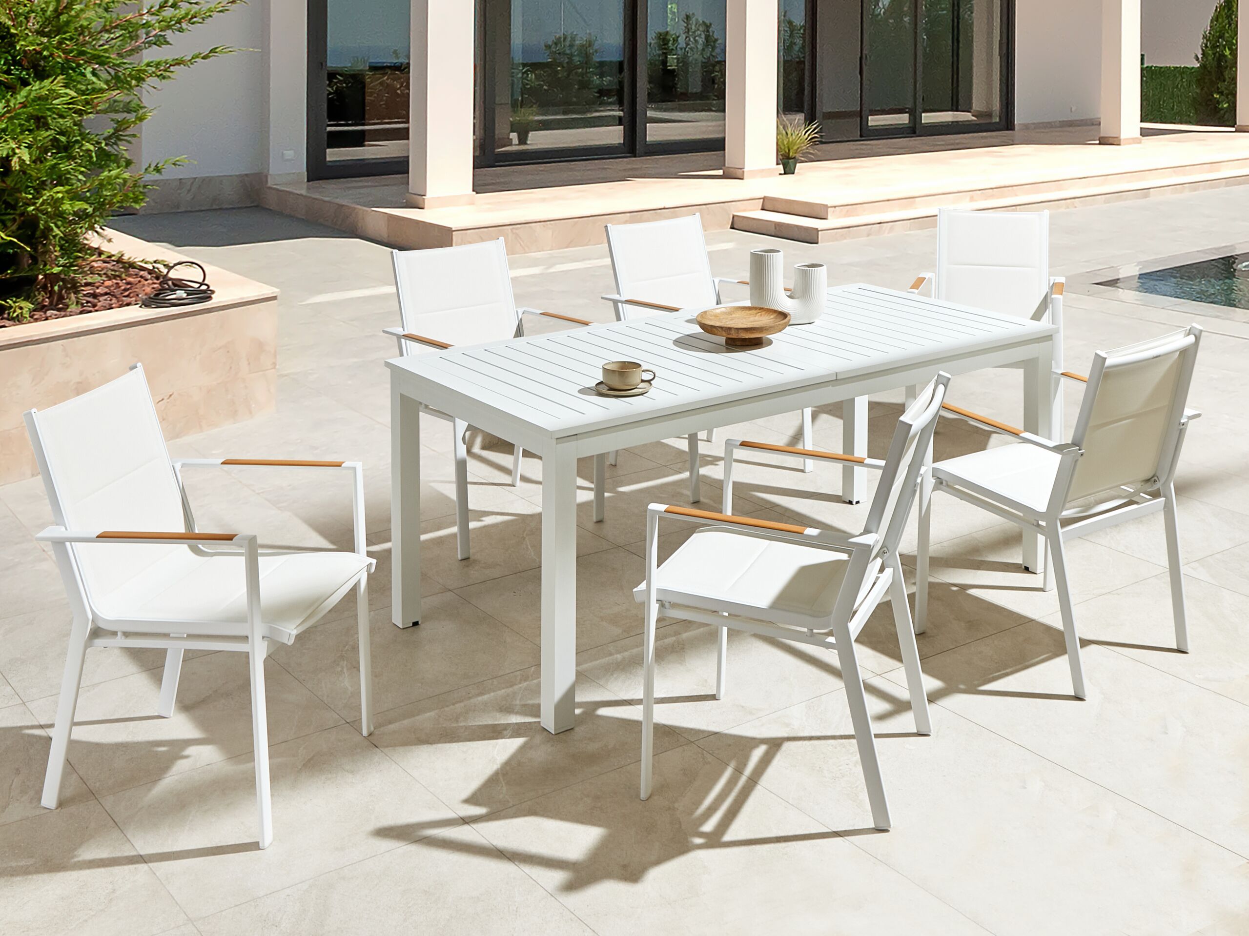 | Libellé | Table de jardin à rallonge en aluminium 180/240 x 90 cm blanche SKALOMA |