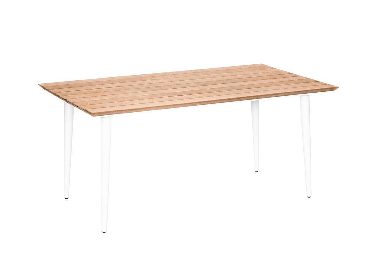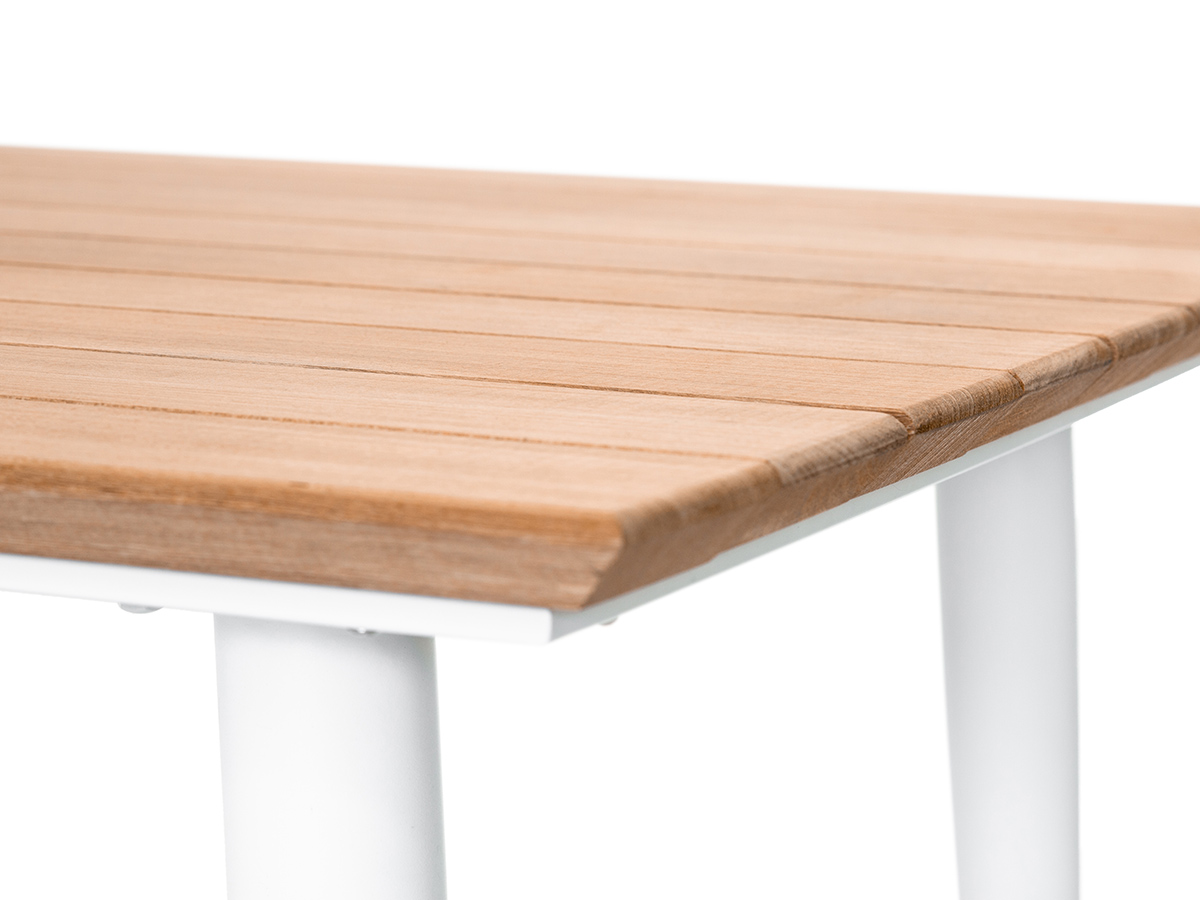 Table de jardin en bois teck Maldive pour 4 à 6 personnes Très belle table en bois de teck conviviale et chaleureuse pour recevoir ses invités cet été. Élégante et robuste, cette table à manger d'extérieur peut accueillir de 4 à 6 personnes. Son plateau en bois de teck apporte un esprit nature sur votre terrasse et s'harmonise à merveille avec une terrasse en bois ou une terrasse en pierre de couleur ocre. Ses pieds blancs en aluminium sont naturellement résistants aux conditions extérieures et durables. Dimensions (L x l x H) : 160 x 90 x 73 cm. Coloris : bois / blanc Structure : teck / aluminium Garantie 2 ans Caractéristiques techniques Forme:Rectangulaire