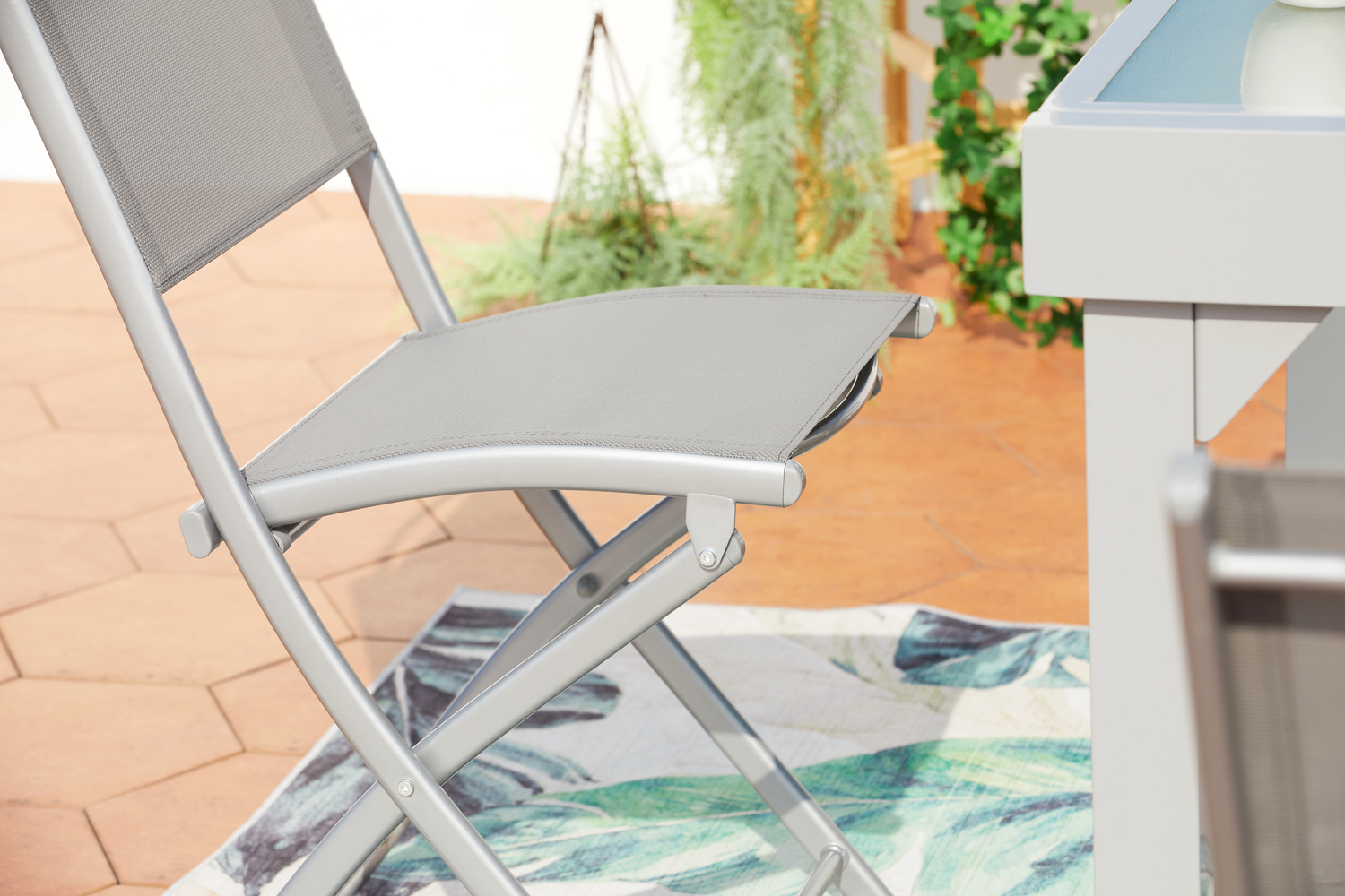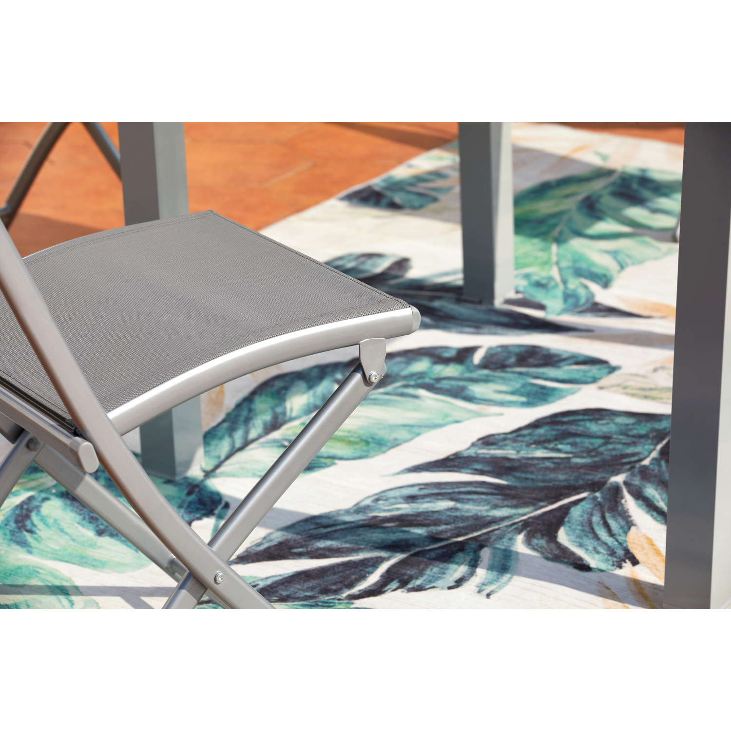 Les differents elements qui composent l'ensemble, qu'ils soient en aluminium ou en acier, sont dotes d'un revêtement par poudre qui le rend resistant aux intemperies L'ensemble table, chaises et fauteuils Molvina est donc robuste et vous suivra au fil des annees.
