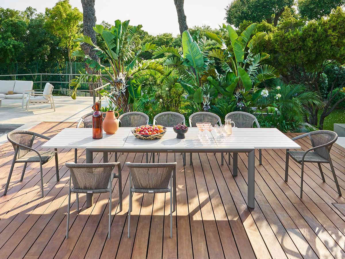 | Libellé | Table de jardin extensible en alu Luzane argile/café, rallonge relevable - 12 places - Hespéride |