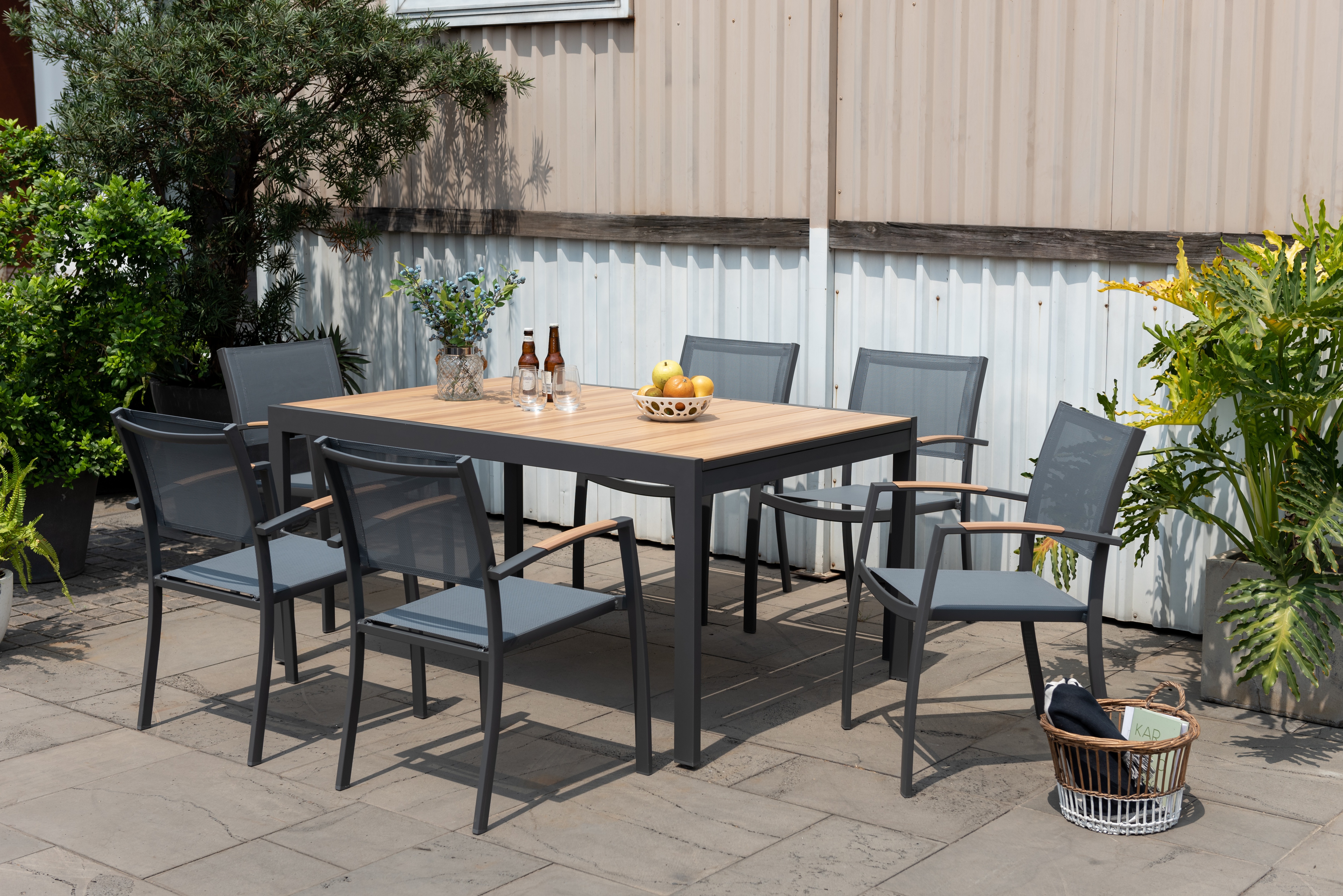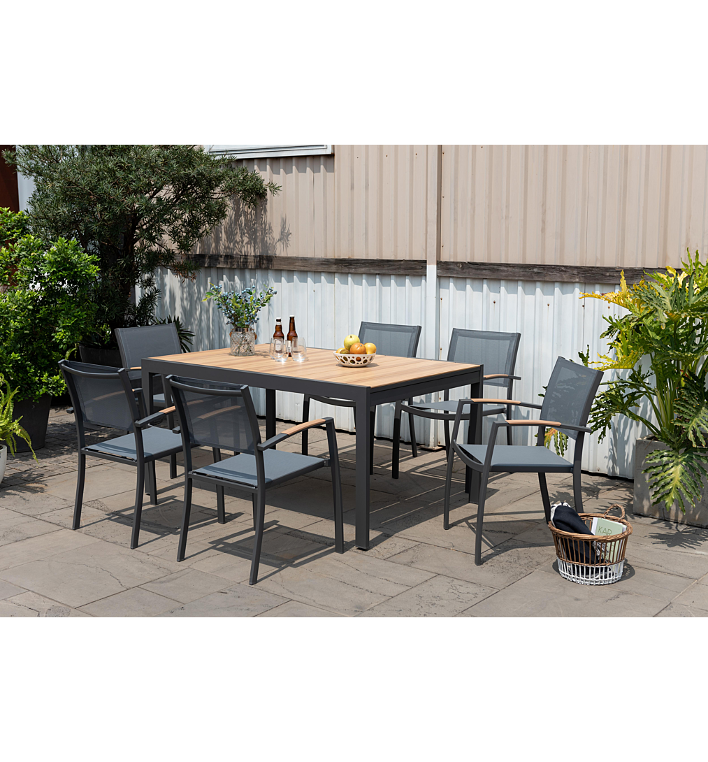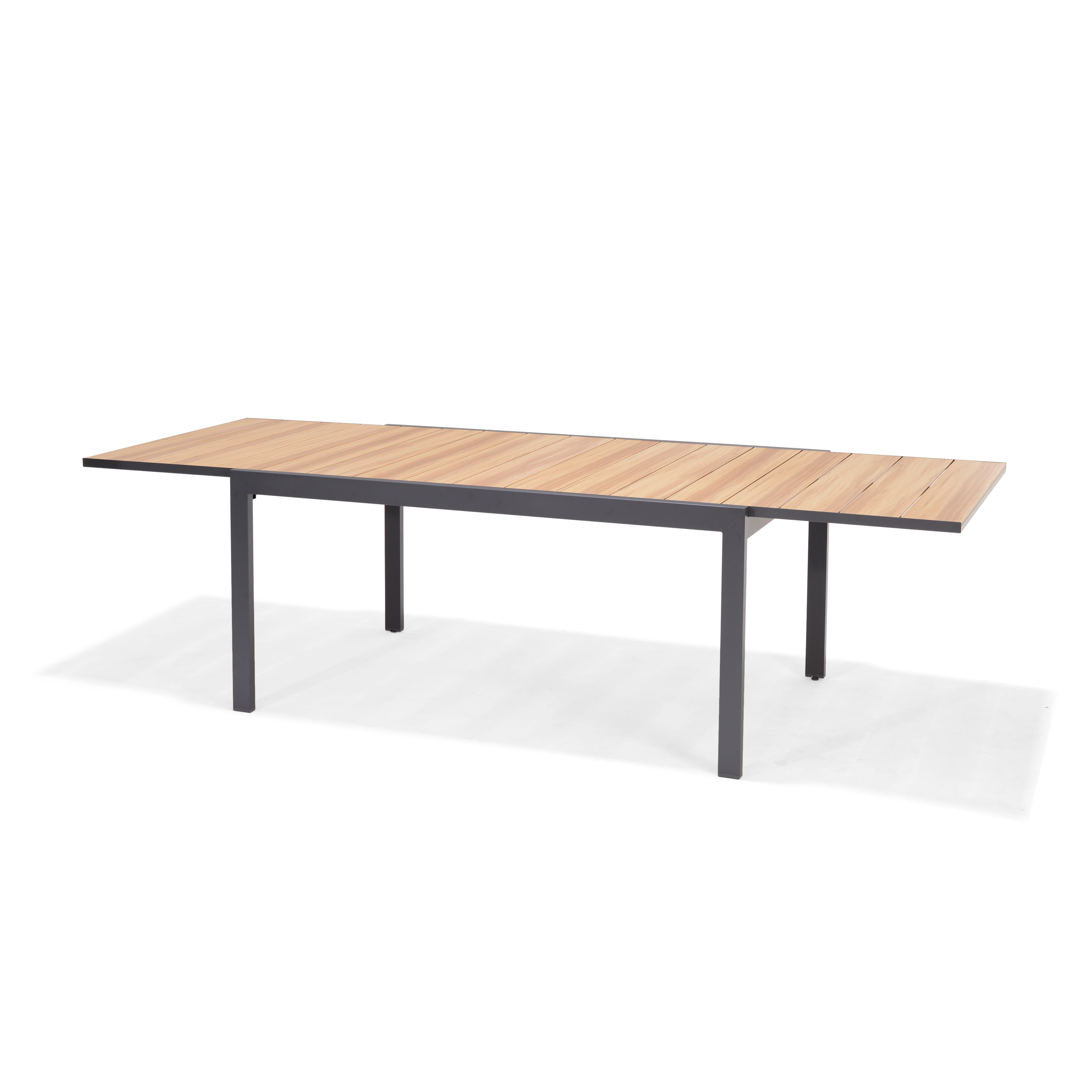 | Libellé | Table de jardin extensible en aluminium coloris gris anthracite avec plateau imitation Teck - 10 personnes |