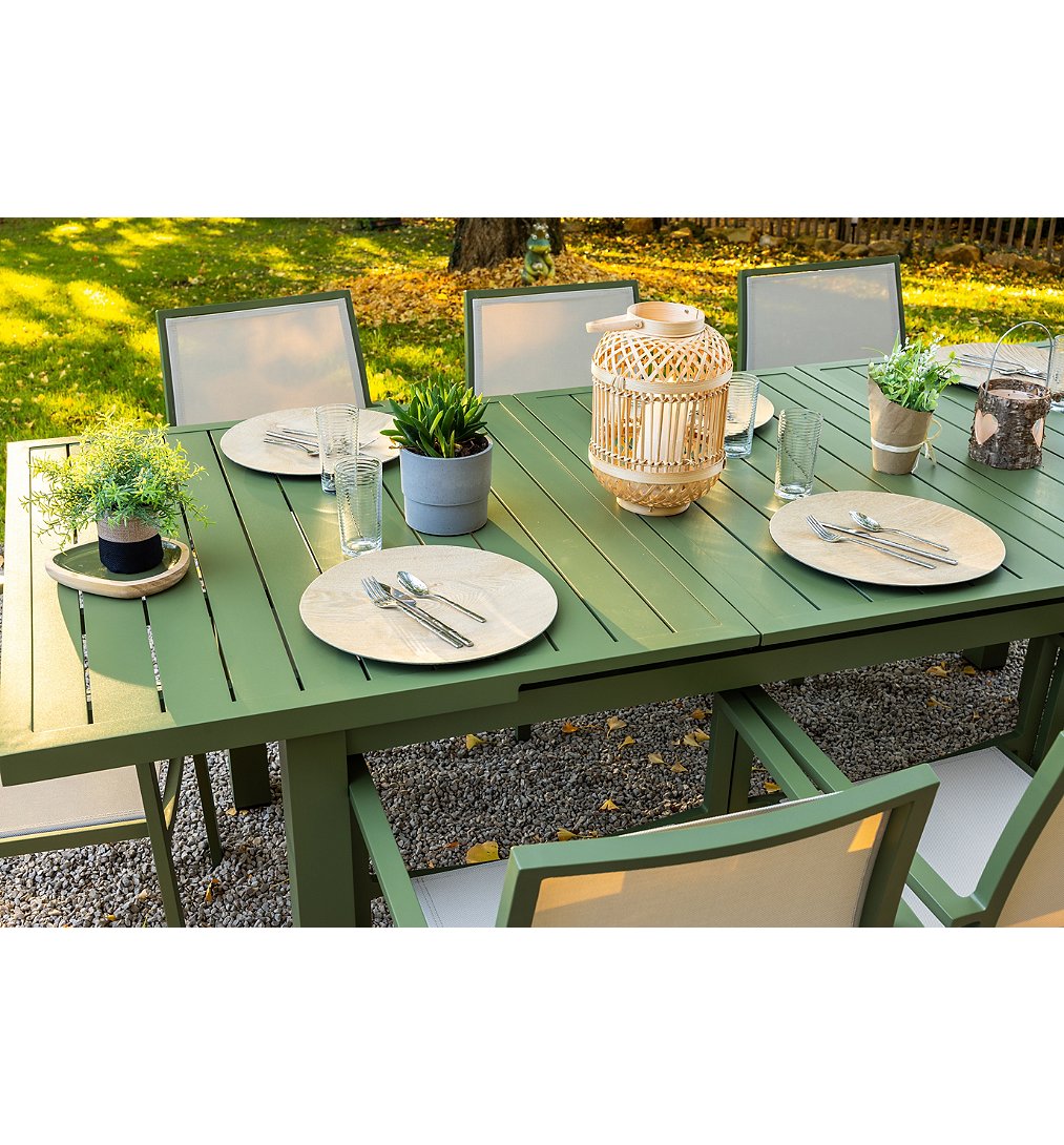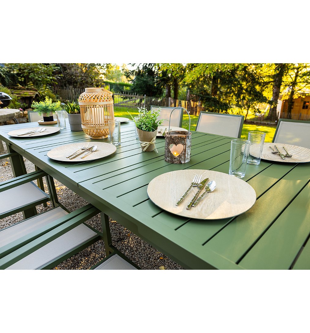 | Libellé | Table de jardin extensible en aluminium Santorin coloris kaki 8/10 personnes |