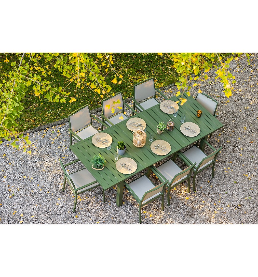 Table de jardin extensible en aluminium Santorin coloris kaki 8/10 personnes