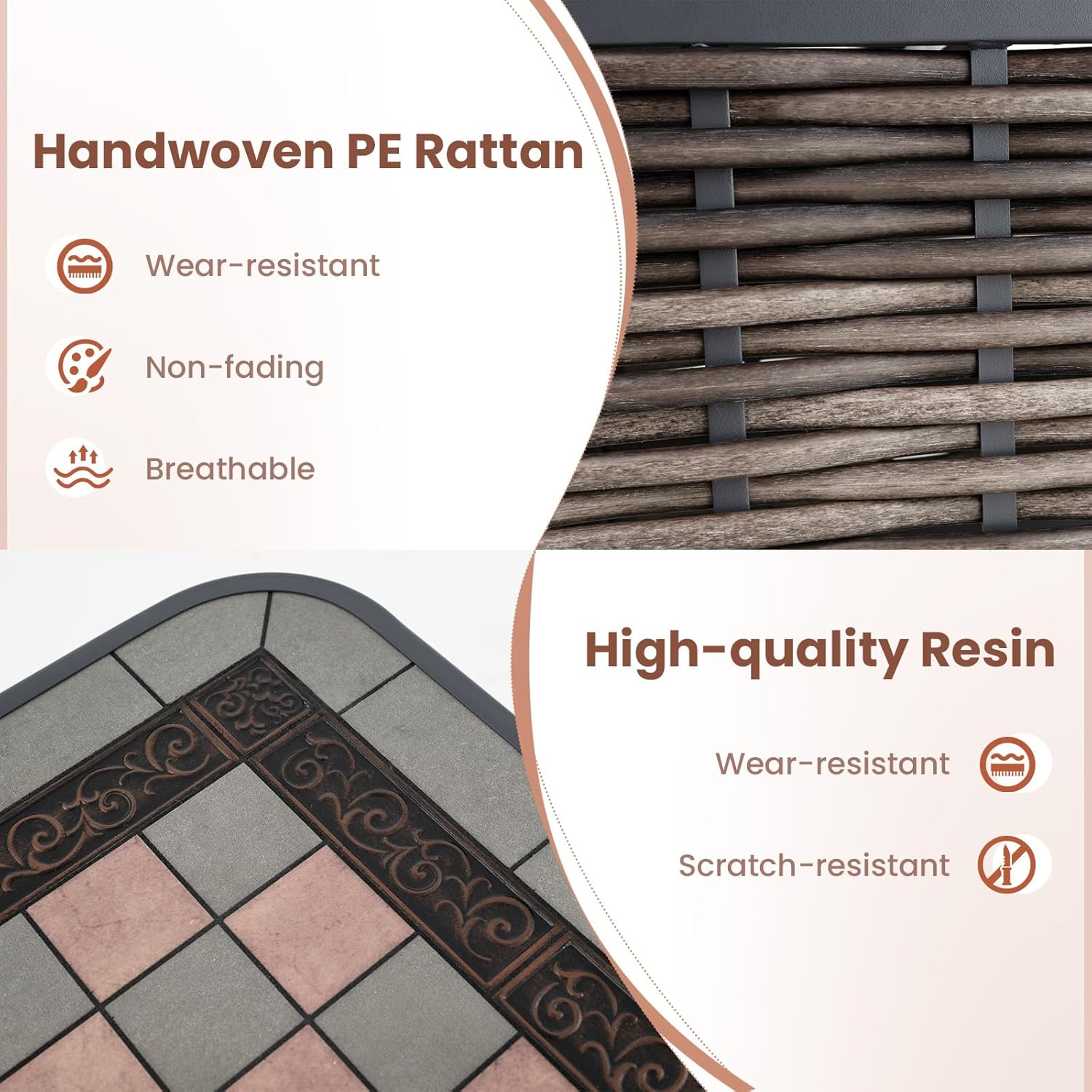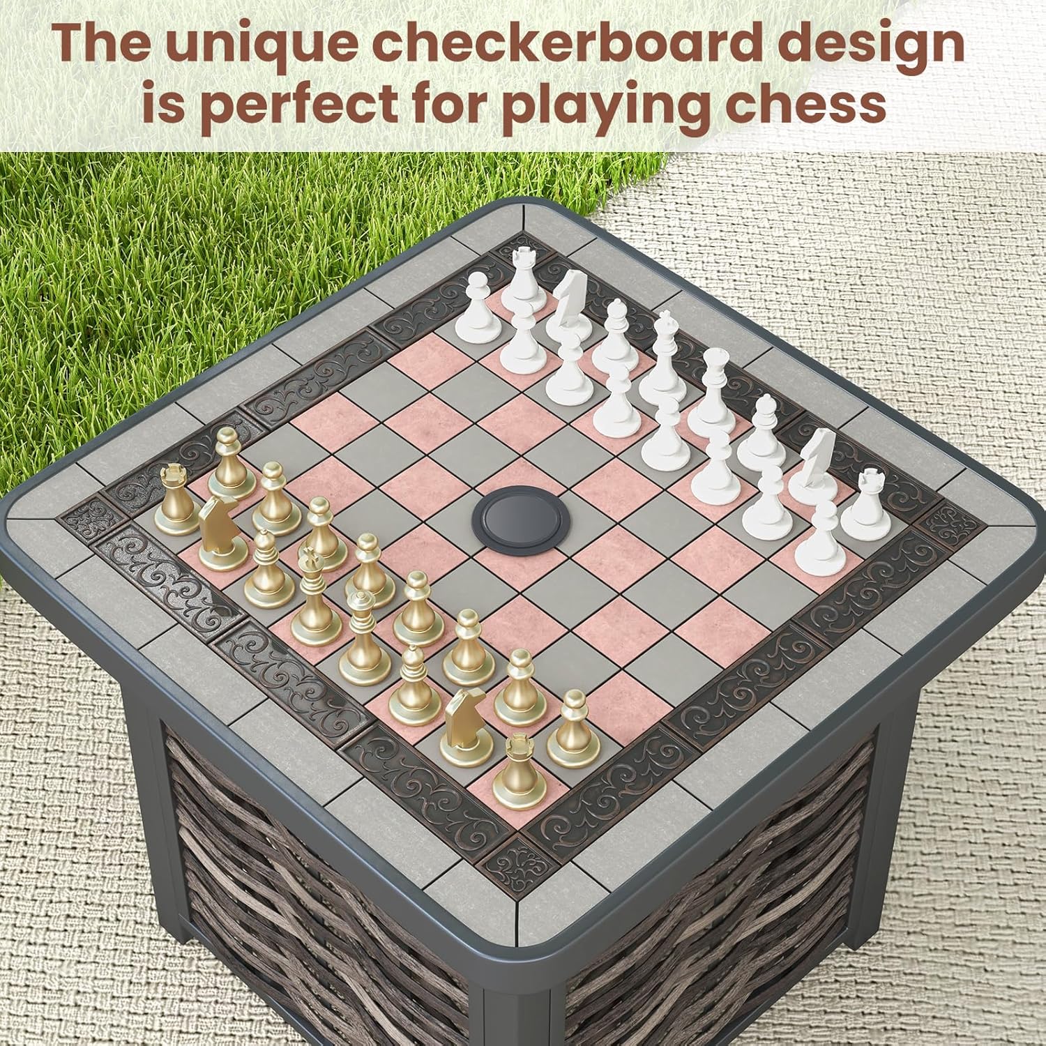 - Table Elégante et Pratique - La table basse avec plateau en résine présente un design en damier unique qui ajoute de la sophistication et du charme à tout espace extérieur. Son plateau de table spacieux offre suffisamment d'espace pour les tasses, les livres et la nourriture, ce qui en fait un ajout pratique à votre chaise. De plus, les coins arrondis améliorent la sécurité.
