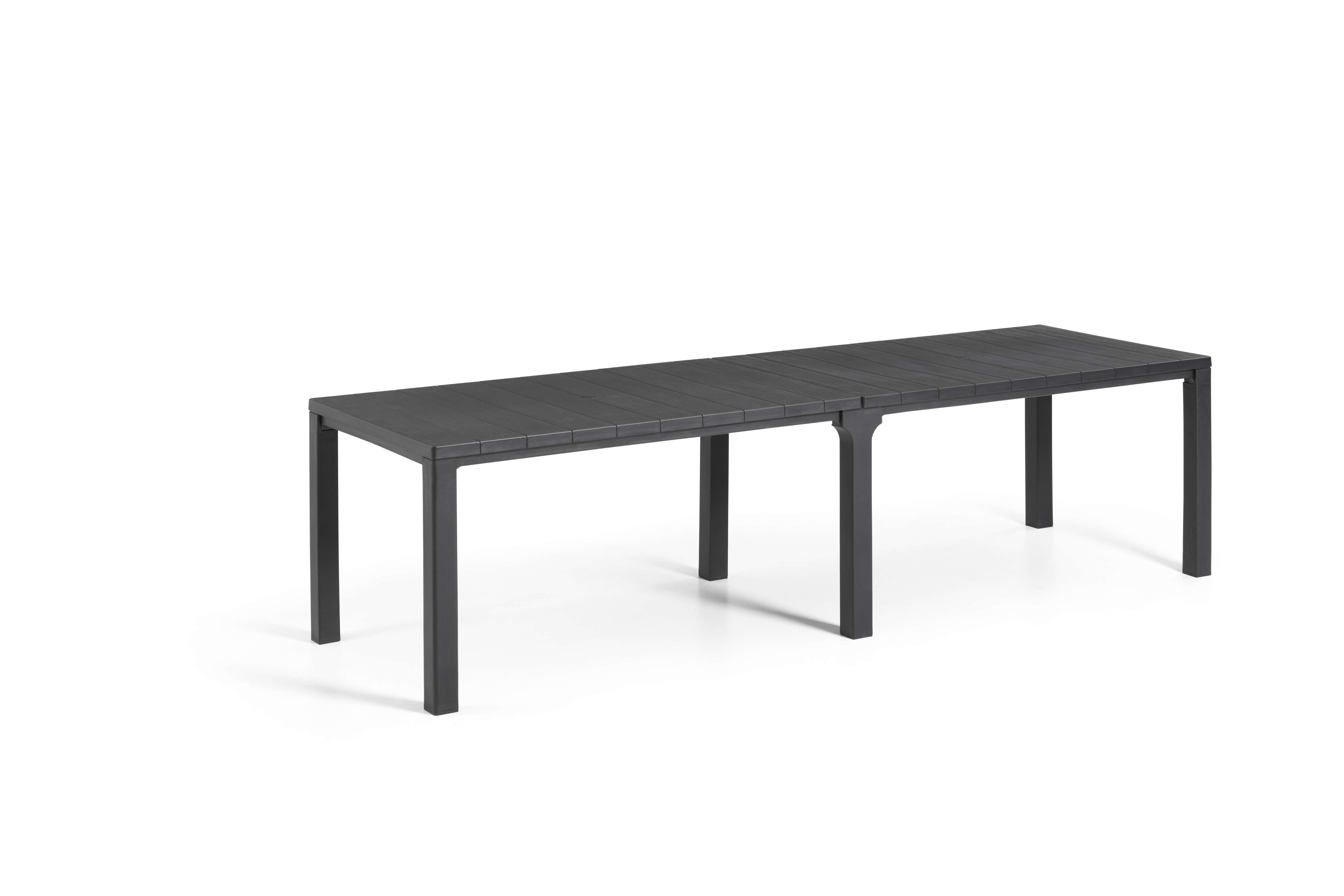 Table de jardin JULIE DOUBLE 3 en 1 en résine coloris gris graphite avec plateau imitation lattes de bois