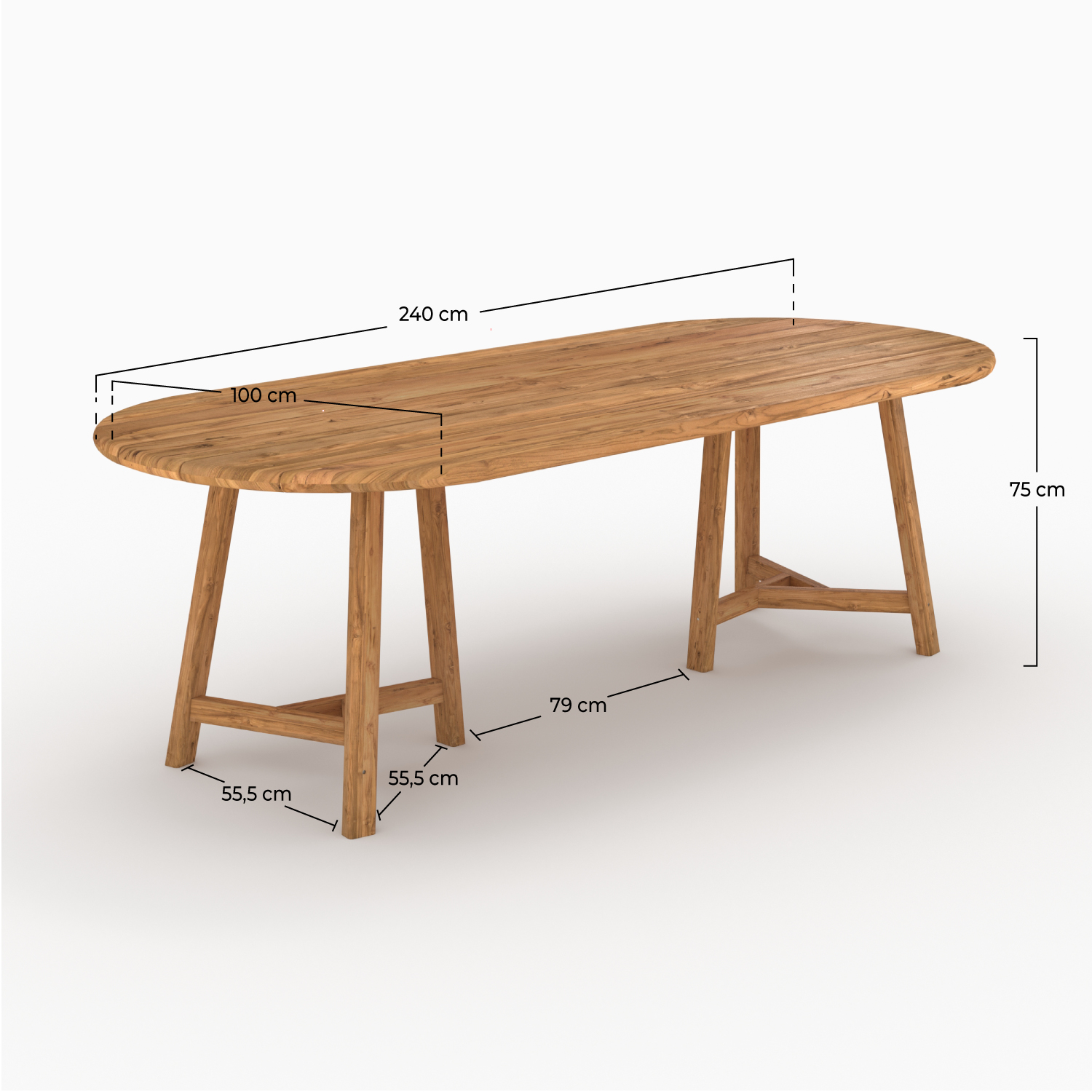 Table de jardin ovale en bois de teck recyclé 10 personnes-Bora