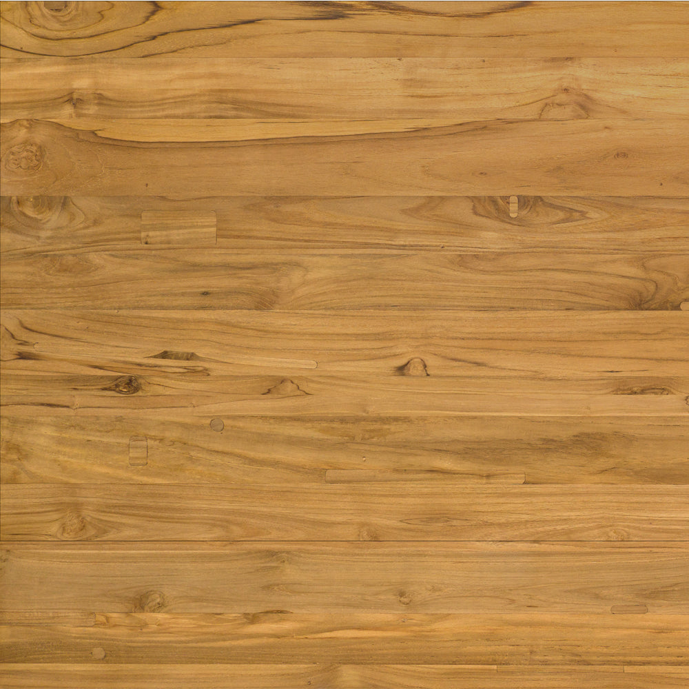 Issu de teck recyclé, déjà sec depuis plusieurs décennies, ce bois offre une durabilité renforcée et une grande solidité : contrairement au bois neuf, il ne travaille plus avec le temps ni avec les variations de température, d’humidité ou d’exposition au soleil. Votre produit en est ainsi plus résistant. Néanmoins, le bois ayant déjà vécu, il peut présenter des aspérités que nous réparons par empiècement ou collage afin de le revaloriser, en veillant à rendre ces réparations les plus discrètes possibles.