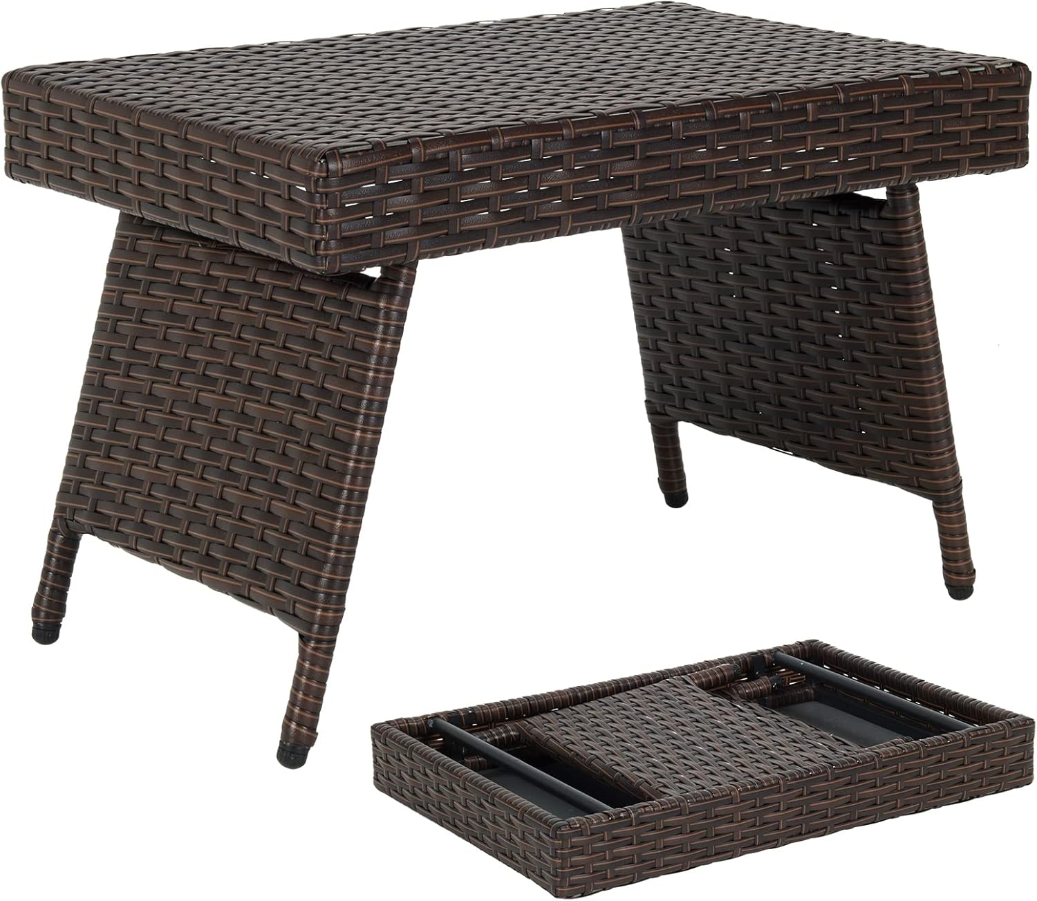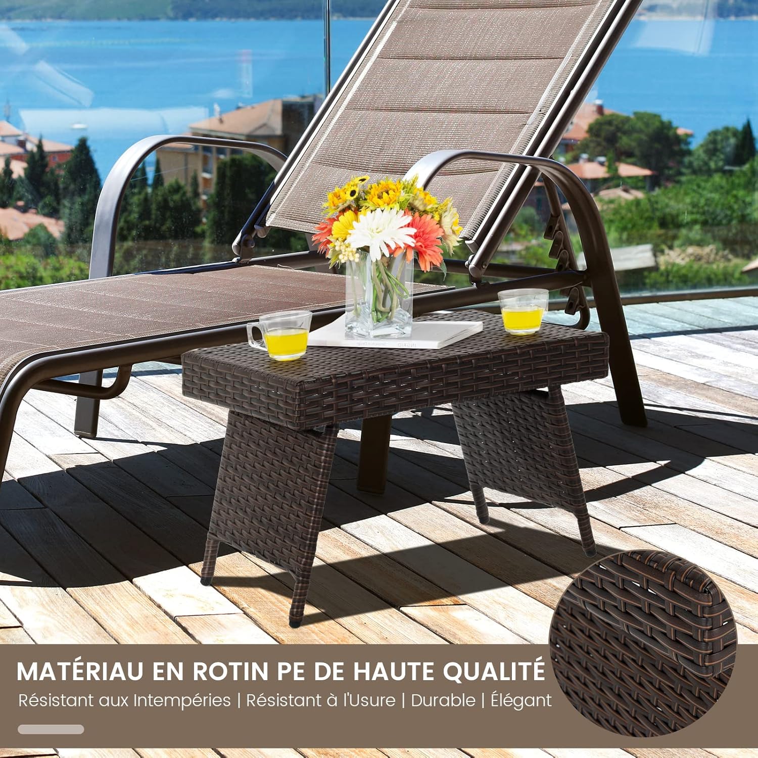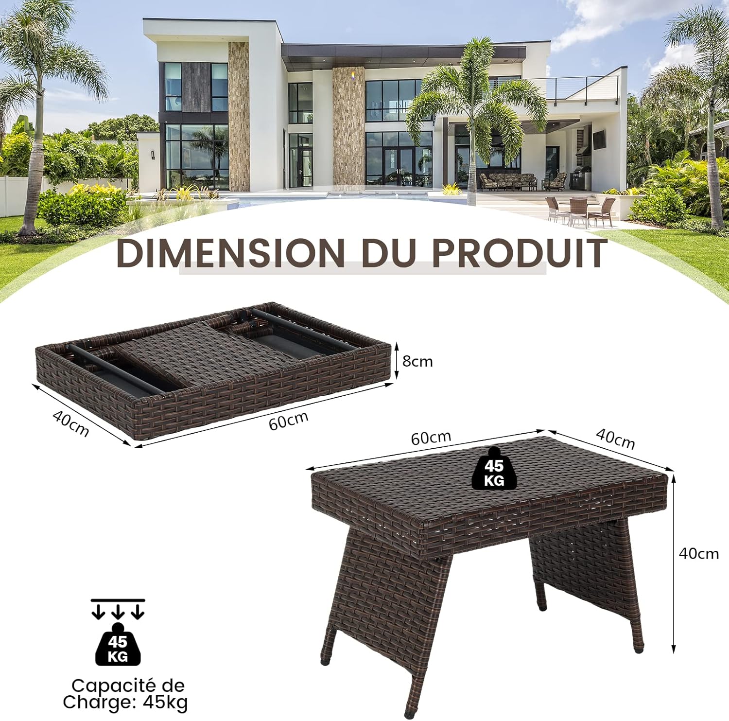 | Libellé | Table de jardin pliable en résine, table basse tressée avec pieds ajustables, table d'appoint pliante |