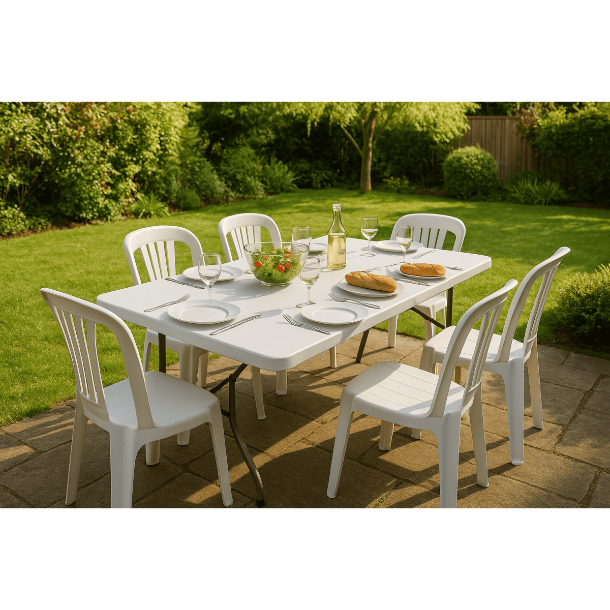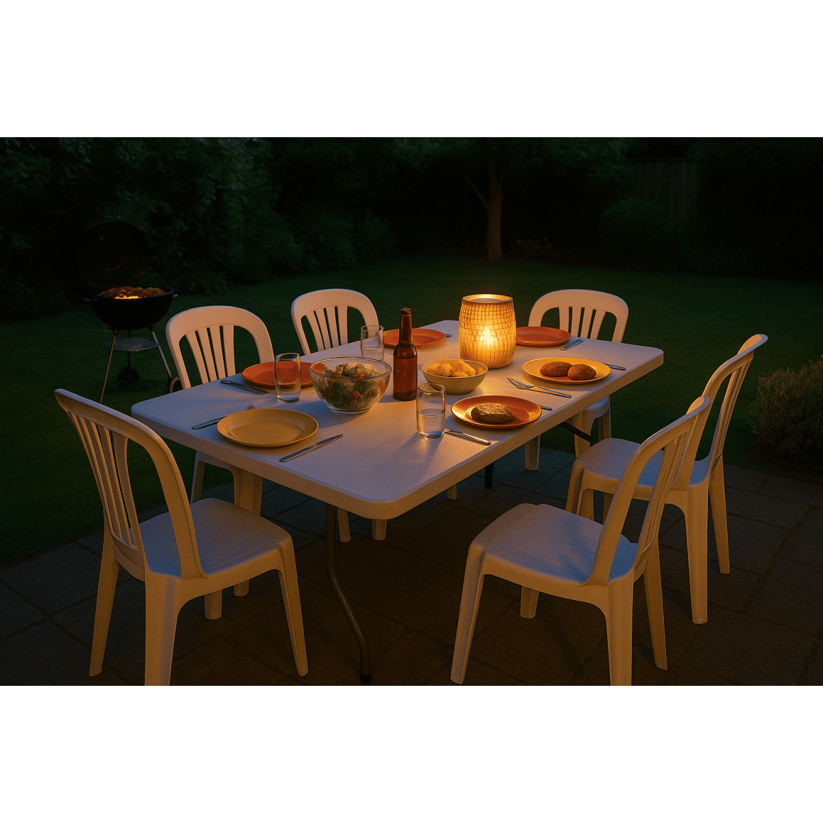 Table de jardin pliante 180x75xH74 cm Blanche Haute resistance Polypropylène Camping Réceptions KZ GARDEN