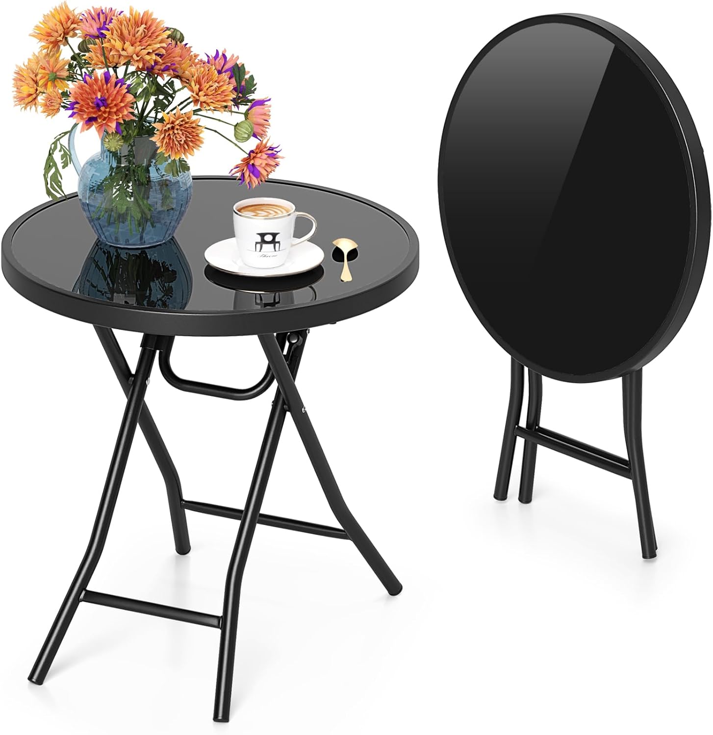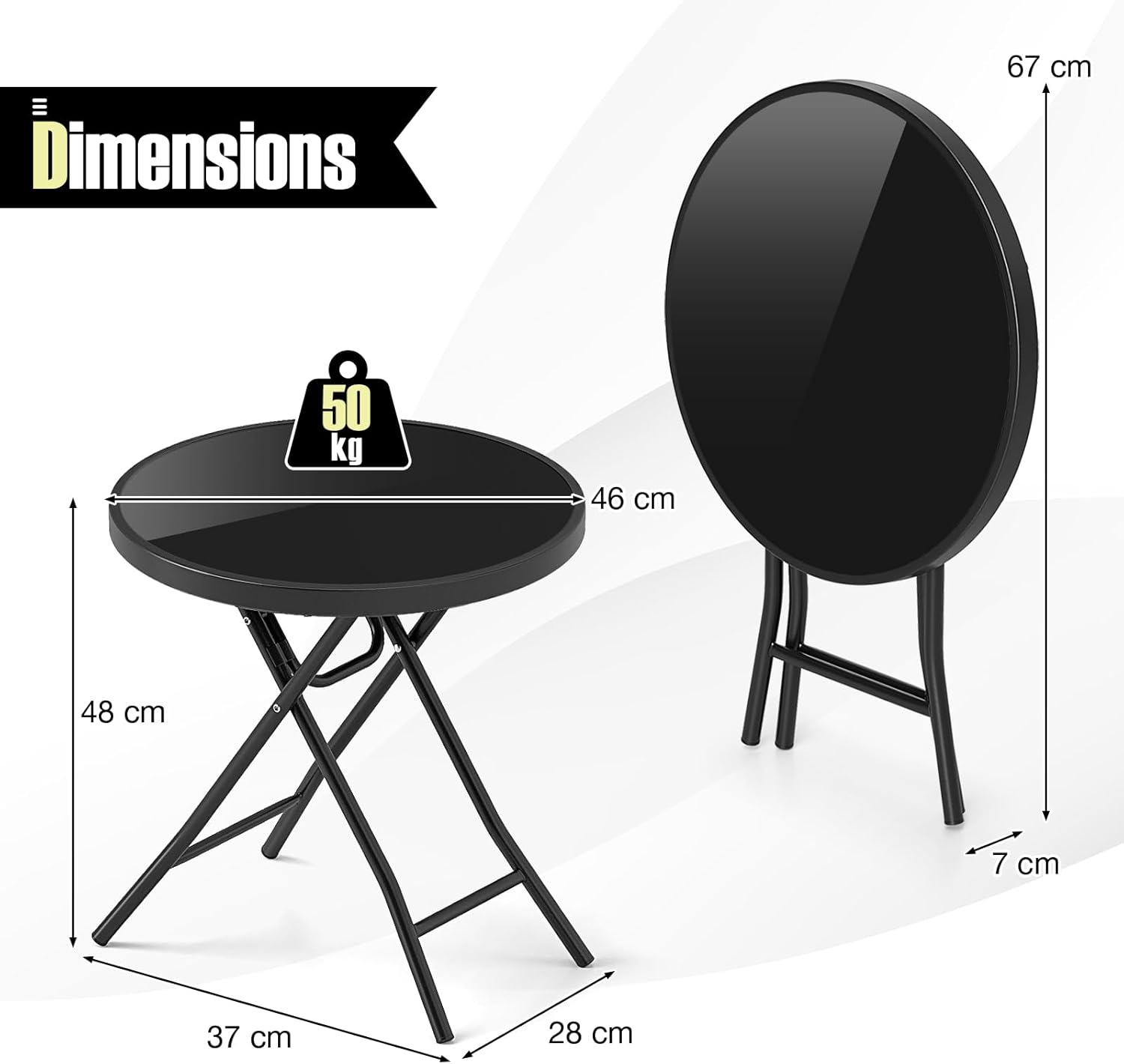 | Libellé | Table de jardin ronde pliante, table basse de terrasse de 45,7 cm avec plateau cadre en métal noir |