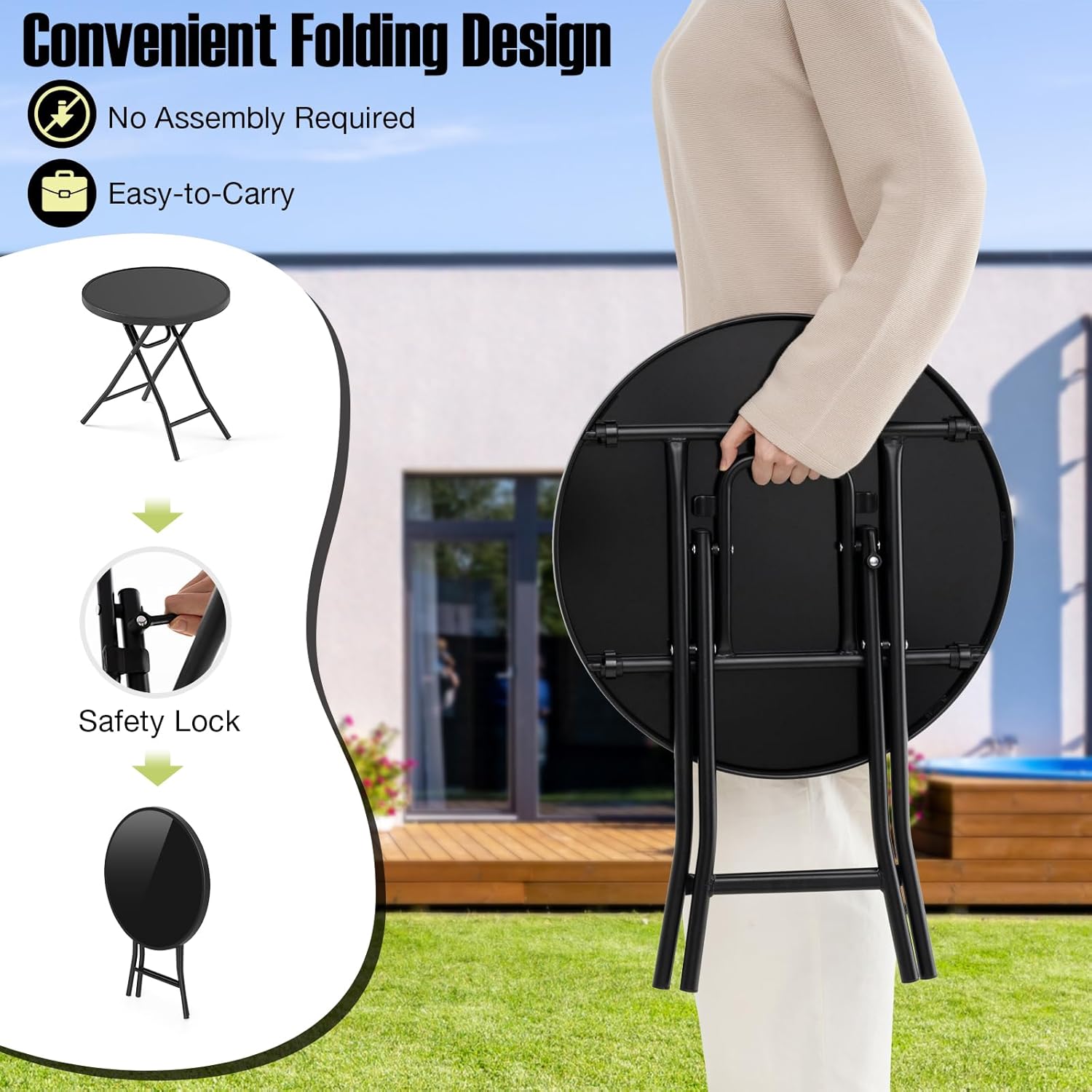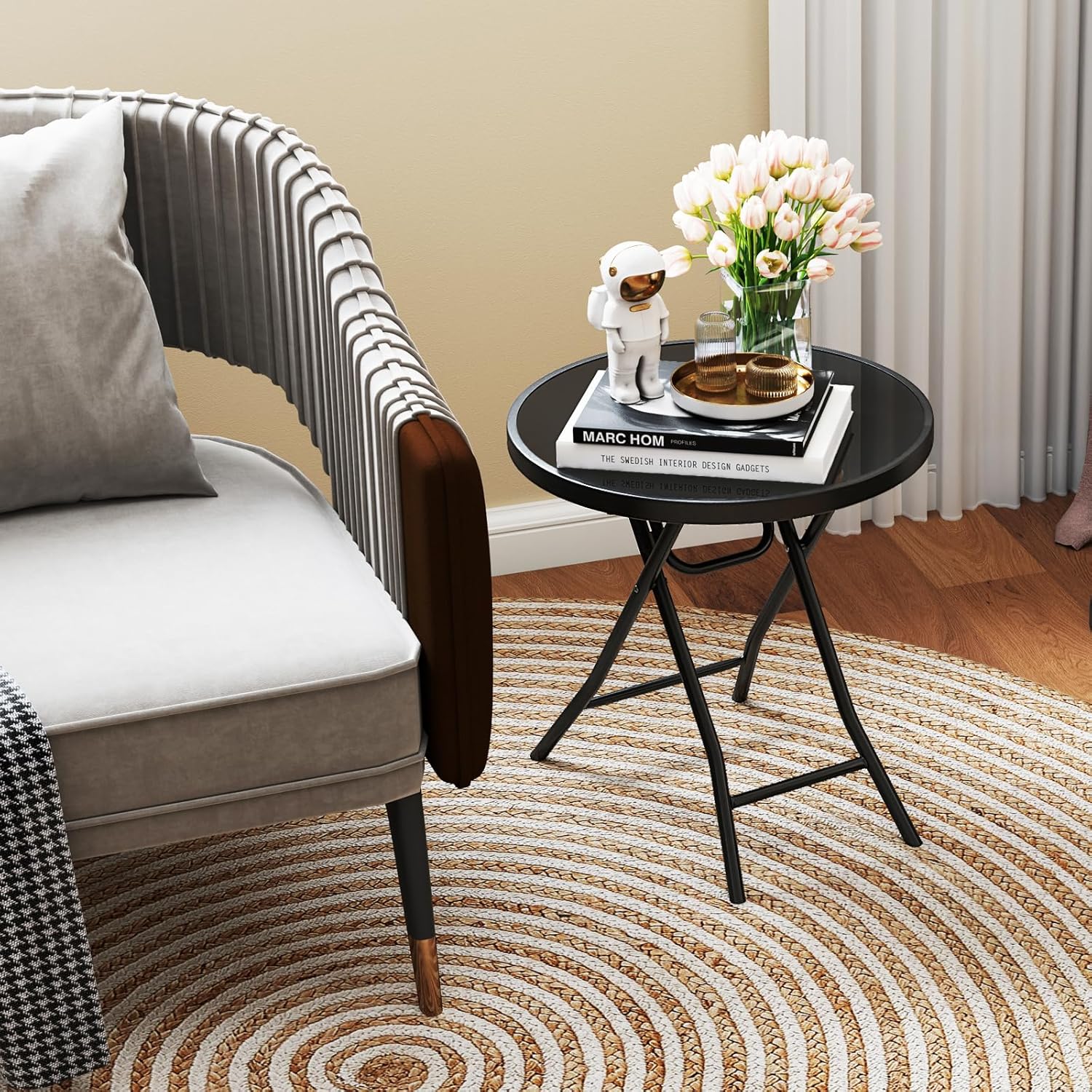 Table de jardin ronde pliante, table basse de terrasse de 45,7 cm avec plateau cadre en métal noir