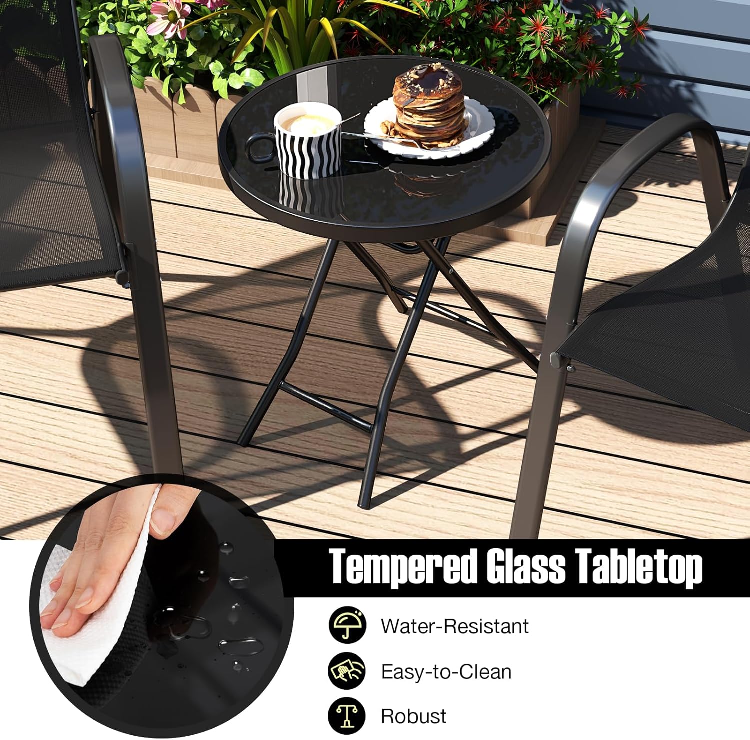 - Plateau en Verre Trempé Robuste - Equipée d'un plateau en verre trempé lisse et résistant aux rayures, la table d'appoint d'extérieur est facile à entretenir et résiste à l'usure quotidienne. Un essuyage rapide suffit pour garder la surface impeccable, parfaite pour une utilisation régulière.
