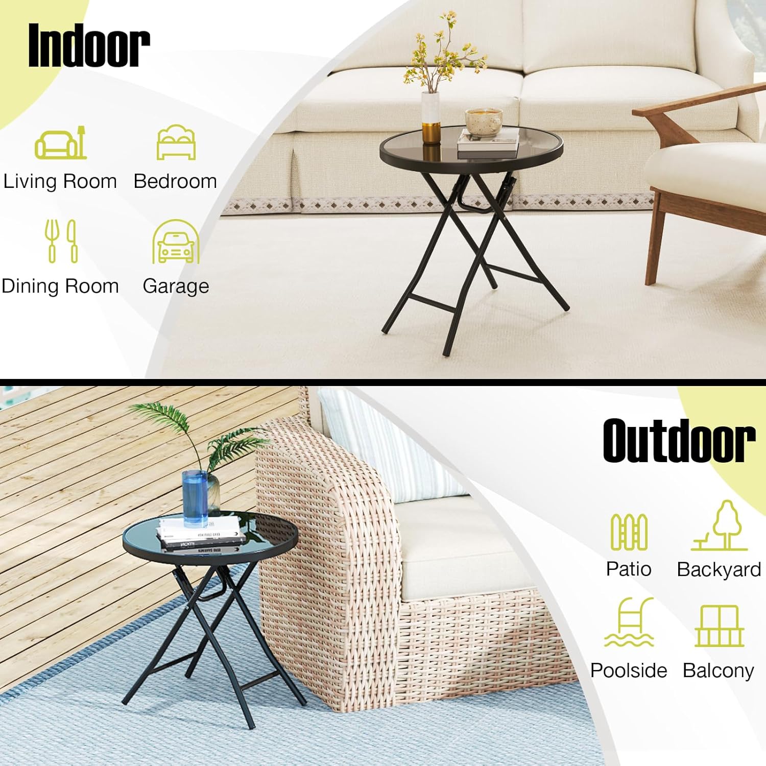 - Conception Pliable et Portable - Dotée d'un design pliable pratique et pesant seulement 3,2 kg, notre petite table de patio est facile à transporter. Sa taille compacte et pliable permet également un rangement facile sous les lits, les canapés ou dans les espaces étroits derrière les portes ou le long des murs.