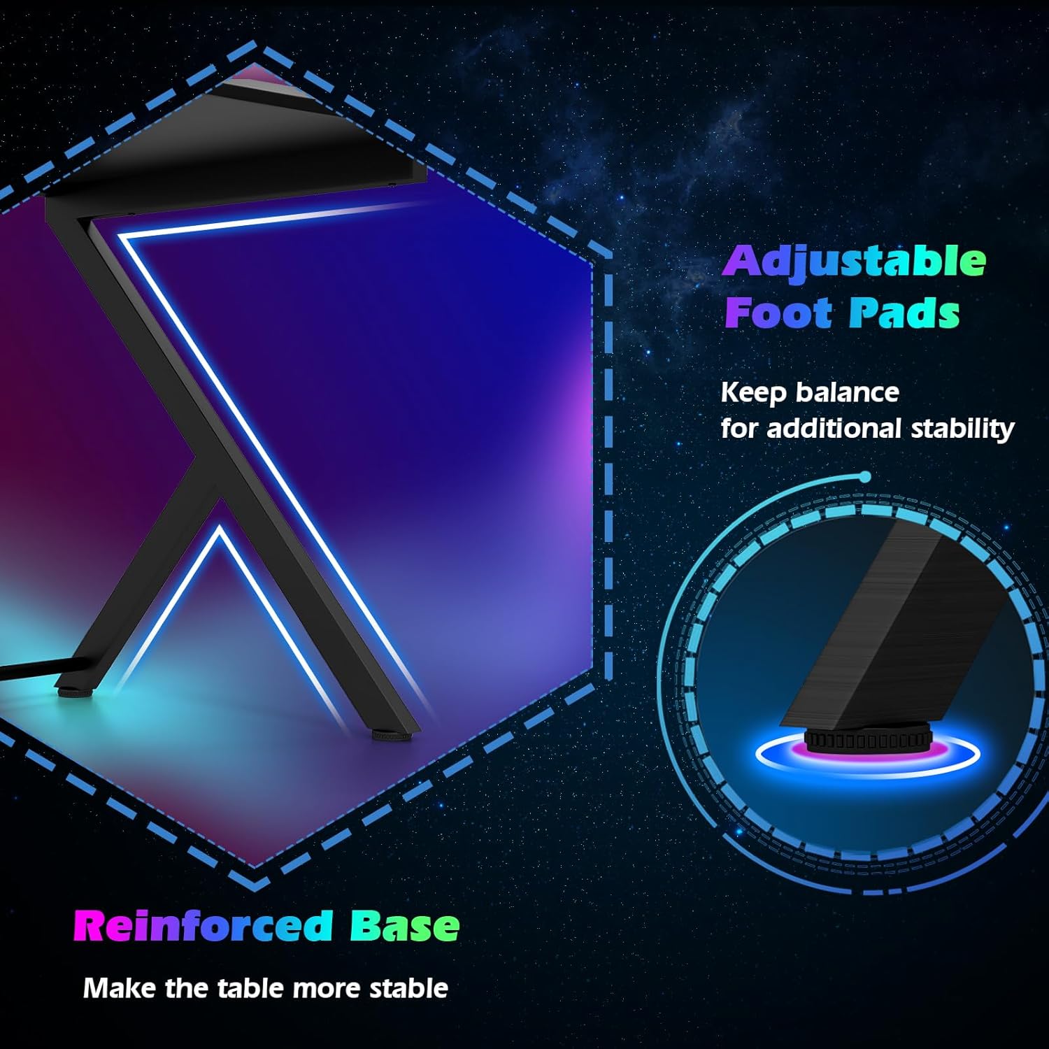 - Haute stabilité - Sous la table pour ordinateur portable se trouvent 4 coussinets de pieds réglables, de sorte que le bureau de jeu peut être stable même sur des surfaces inégales. En outre, les coussinets en plastique protègent efficacement le sol des rayures.