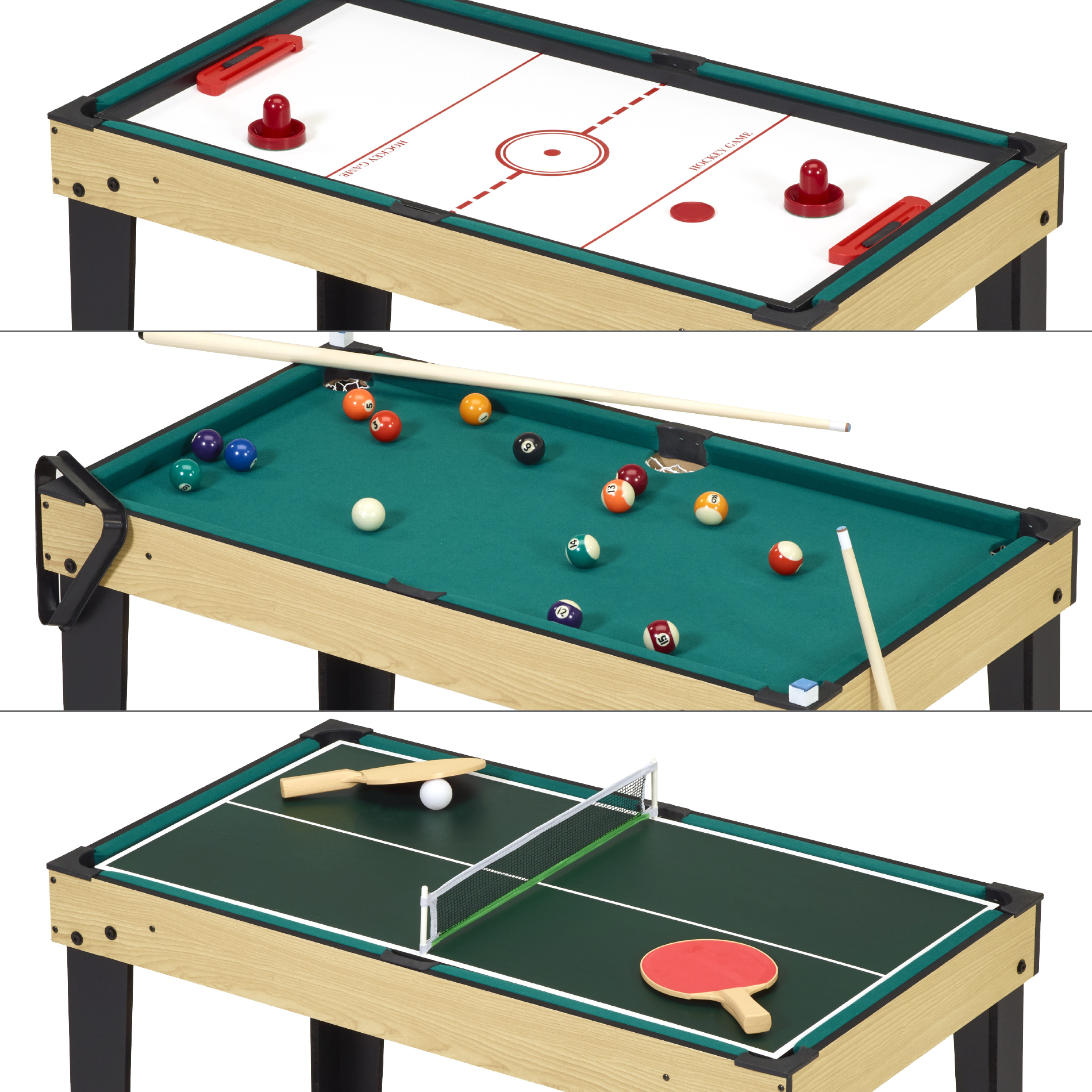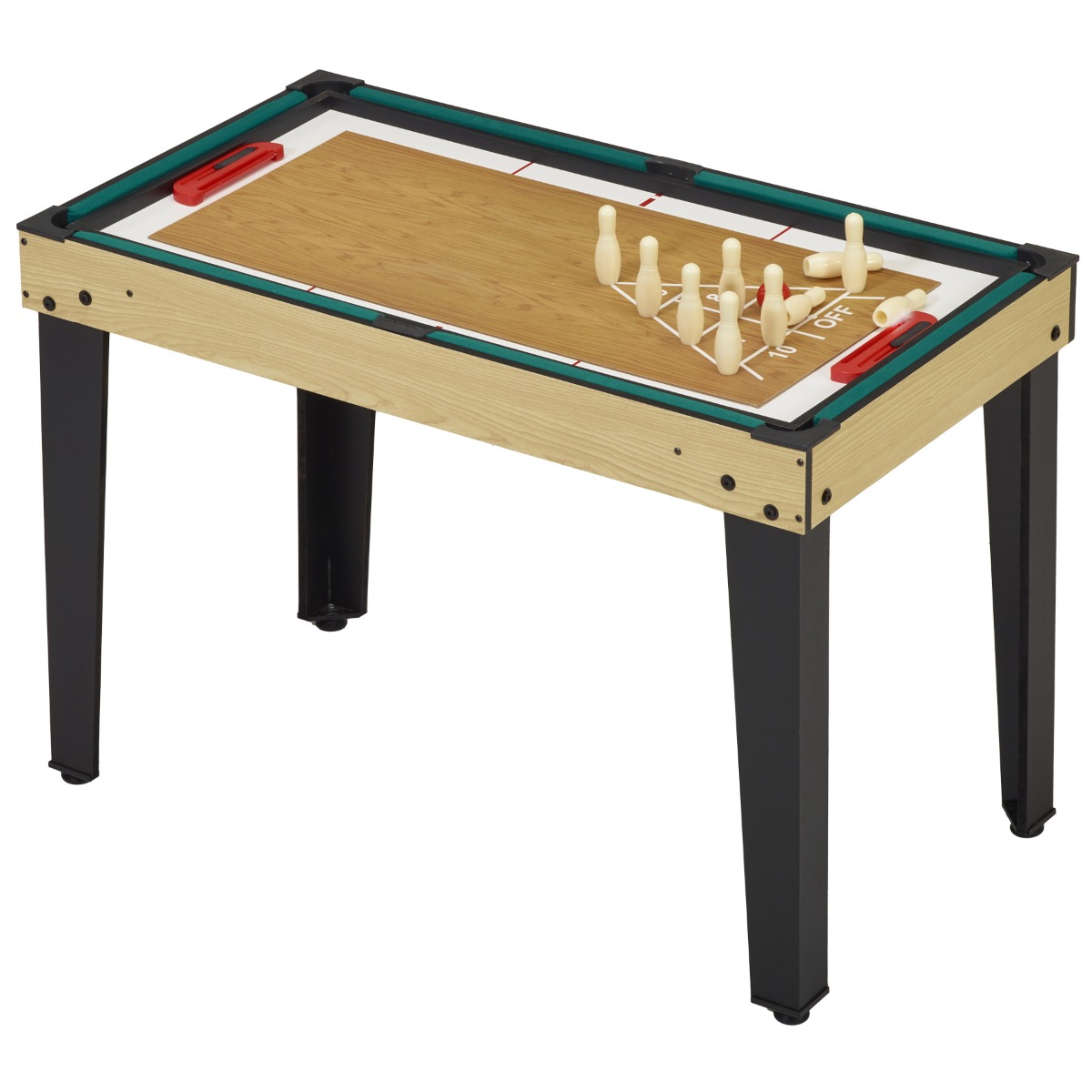 | Libellé | Table de jeux 10 en 1 - Baby-Foot - Billard - Ping Pong - Hockey - Bowling - Cartes - Structure Bois - Accessoires Inclus |