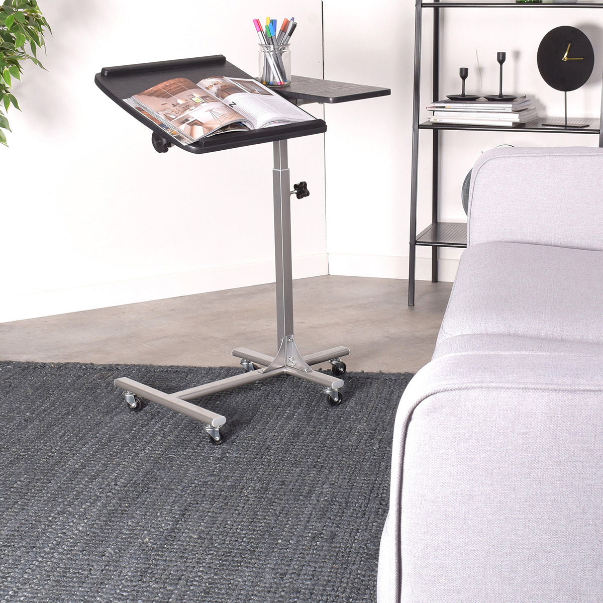 Table de lit Table Support Tablette Ordinateur Portable Noir Roulettes Pivotantes Hauteur Réglable