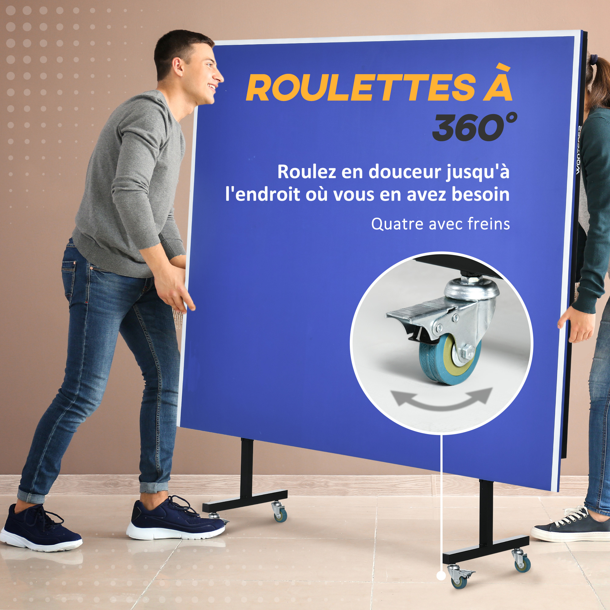 Libellé Table de ping pong tennis de table pliable 8 roues - filet, 2 raquettes, 3 balles inclus - noir bleu