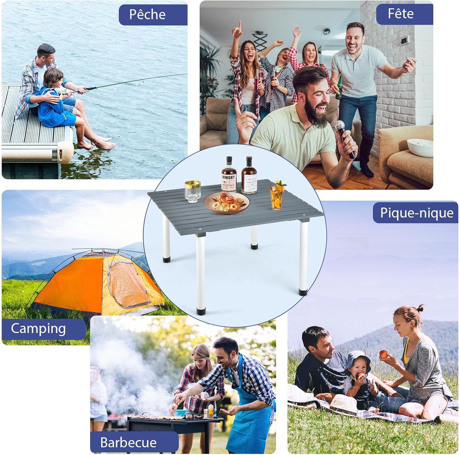 • Assemblage simple et rapide : Guidée par des instructions d'installation détaillées et des pièces étiquetées, la table de camping est facile à installer en quelques minutes. Grâce aux bandes élastiques flexibles, le plateau enroulable est facile à étirer et à fixer. Vous pouvez rapidement assembler la table et profiter de votre pique-nique en plein air à tout moment.