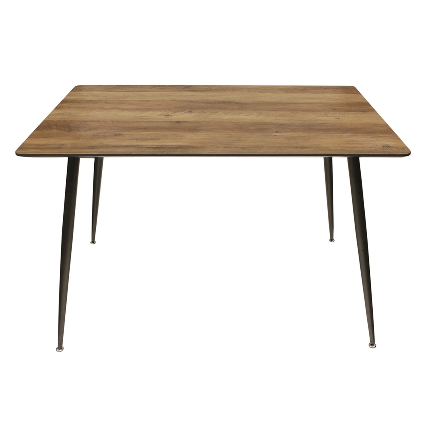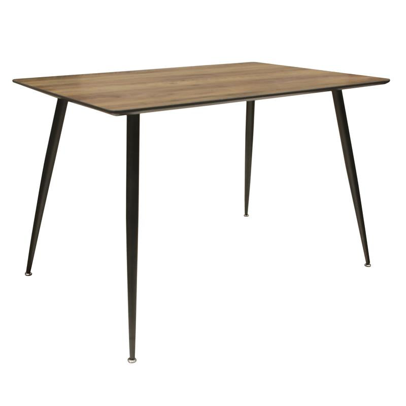Vous recherchez une table à manger de style design ? Cette table sera parfaite pour vous. Avec son plateau effet bois et ses pieds en métal noir, elle saura parfaitement s'intégrer à votre intérieur.