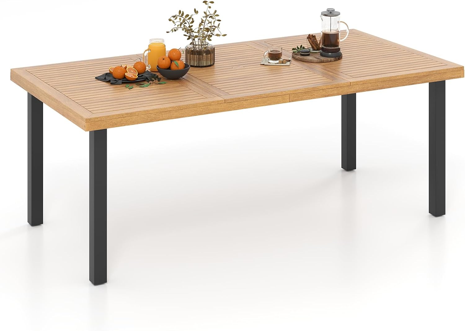- Table Longue pour 8 Personnes : Cette table de salle à manger pour l'extérieur offre un plateau de 200 x 100 cm, offrant un espace confortable pour 8 personnes. Elle est donc idéale pour des repas en famille, des dîners et des rencontres entre amis en extérieur. Le large plateau de table offre beaucoup d'espace pour servir et partager les repas.