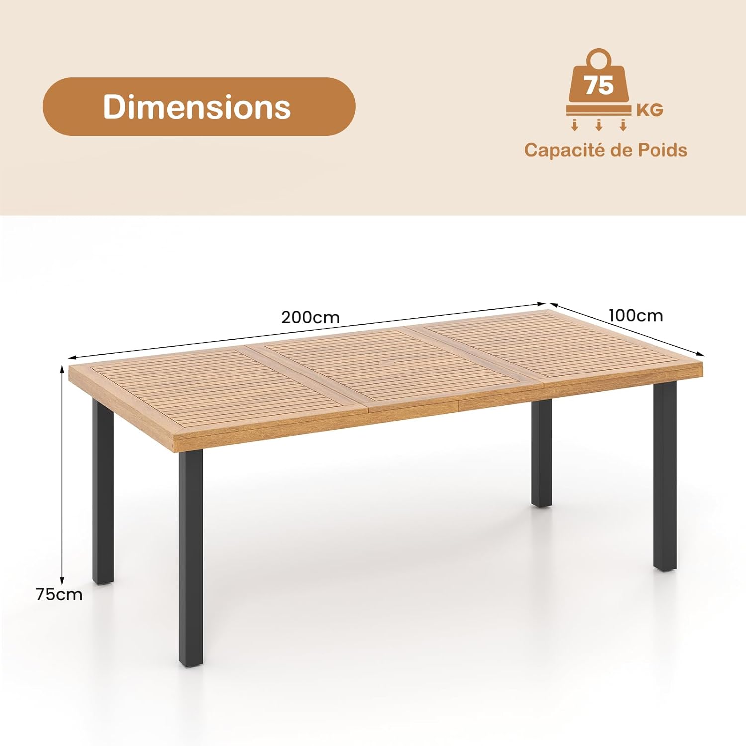 Table de salle à manger en bois d'acacia jardin exterieur table à manger 8 personnes &trou pour parasol