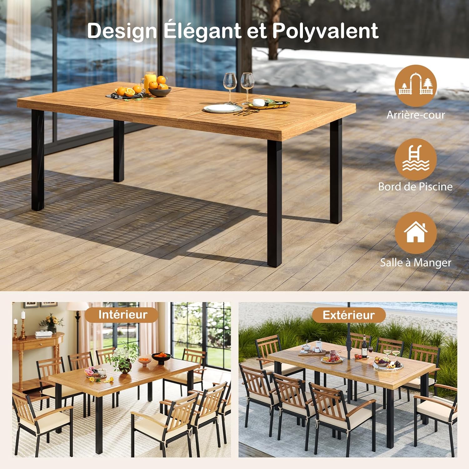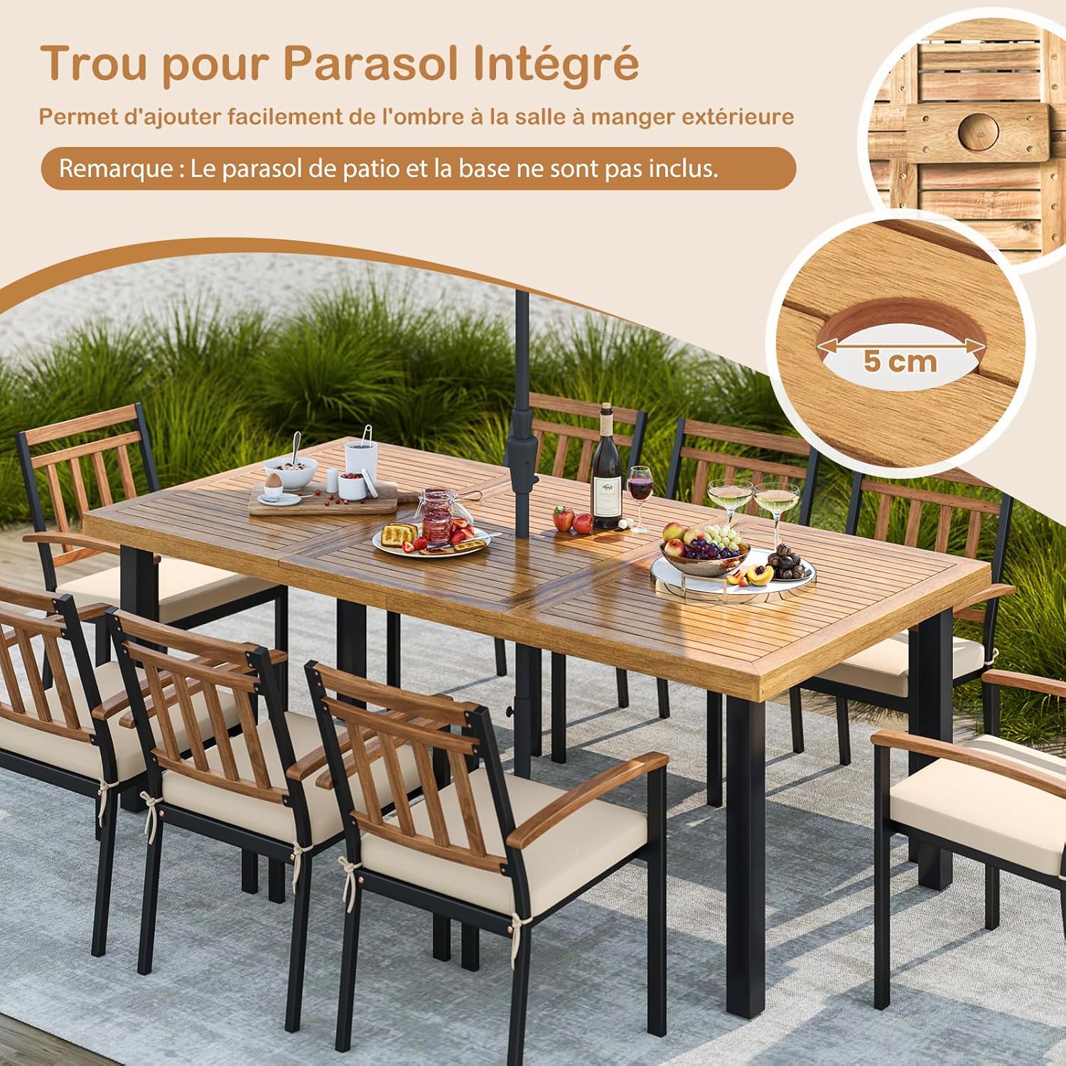 | Libellé | Table de salle à manger en bois d'acacia jardin exterieur table à manger 8 personnes &trou pour parasol |
