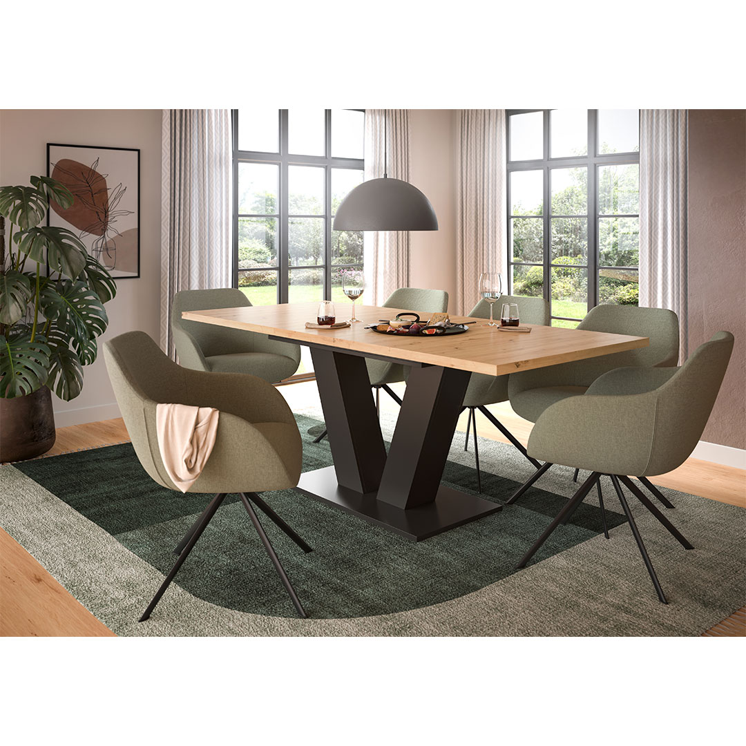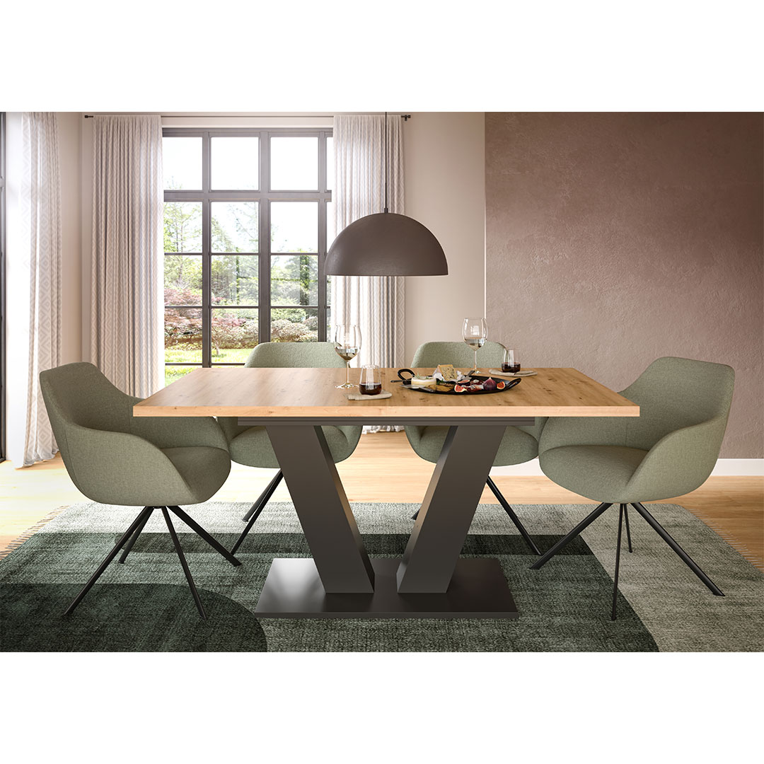 | Libellé | Table de salle à manger extensible (L/H/P : 150-190x76x80 cm) en imitation Artisan et imitation gris avec piétement en V |