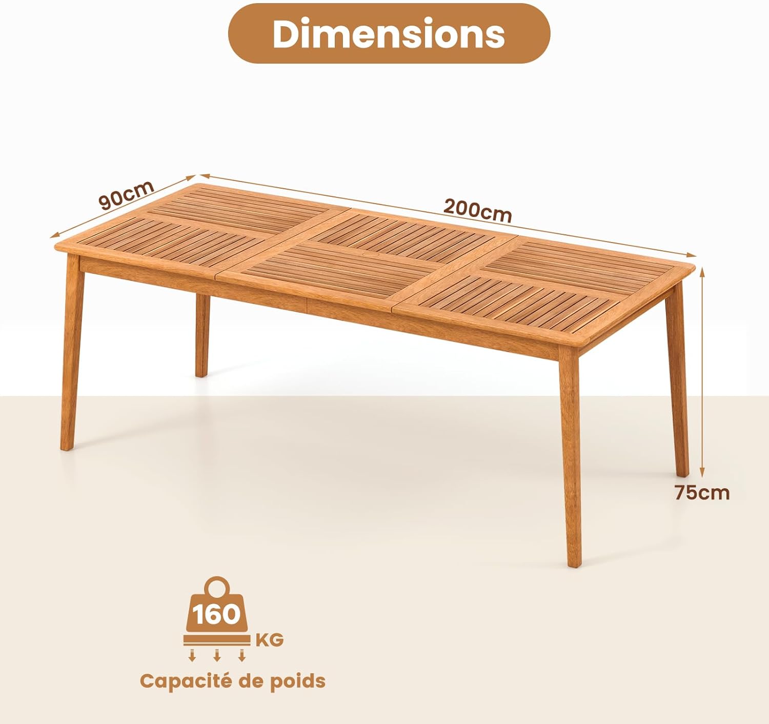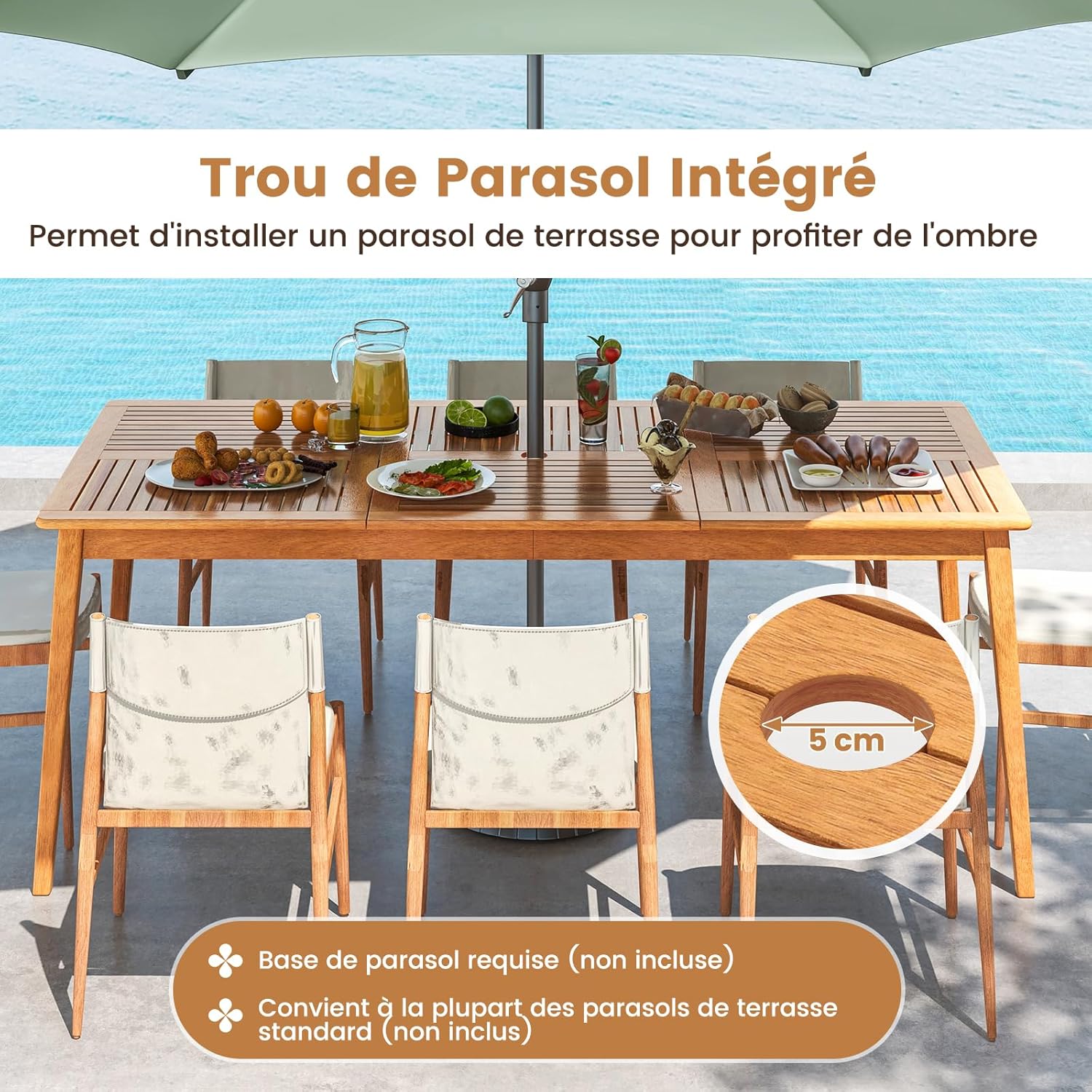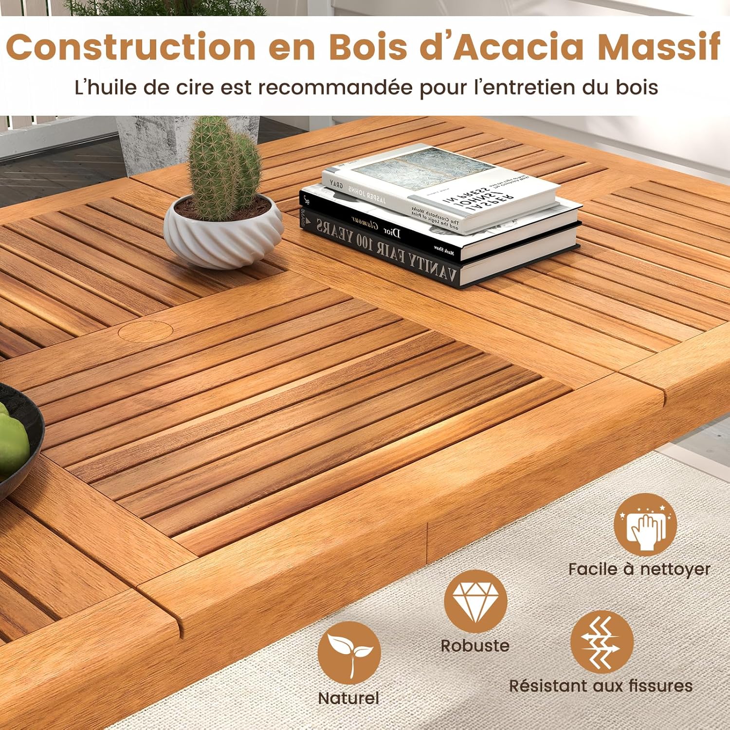 | Libellé | Table de salle à manger extérieur bois d'acacia 8 personnes,table salon de jardin avec trou pour parasol |