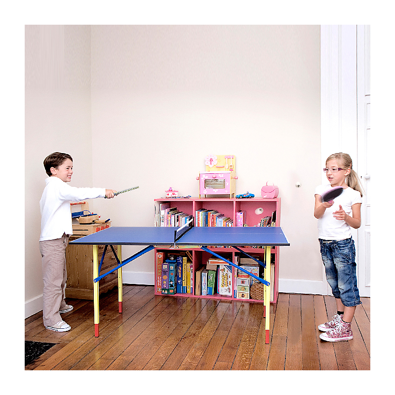 Mini table pliante pour decouvrir le plaisir du tennis de table. Reglable en 3 hauteurs (760/680/600mm). Les enfants peuvent donc aussi jouer. Le dessus peut être rabattu pour reduire l'espace de rangement. Facile à installer, livre avec filet et supports.