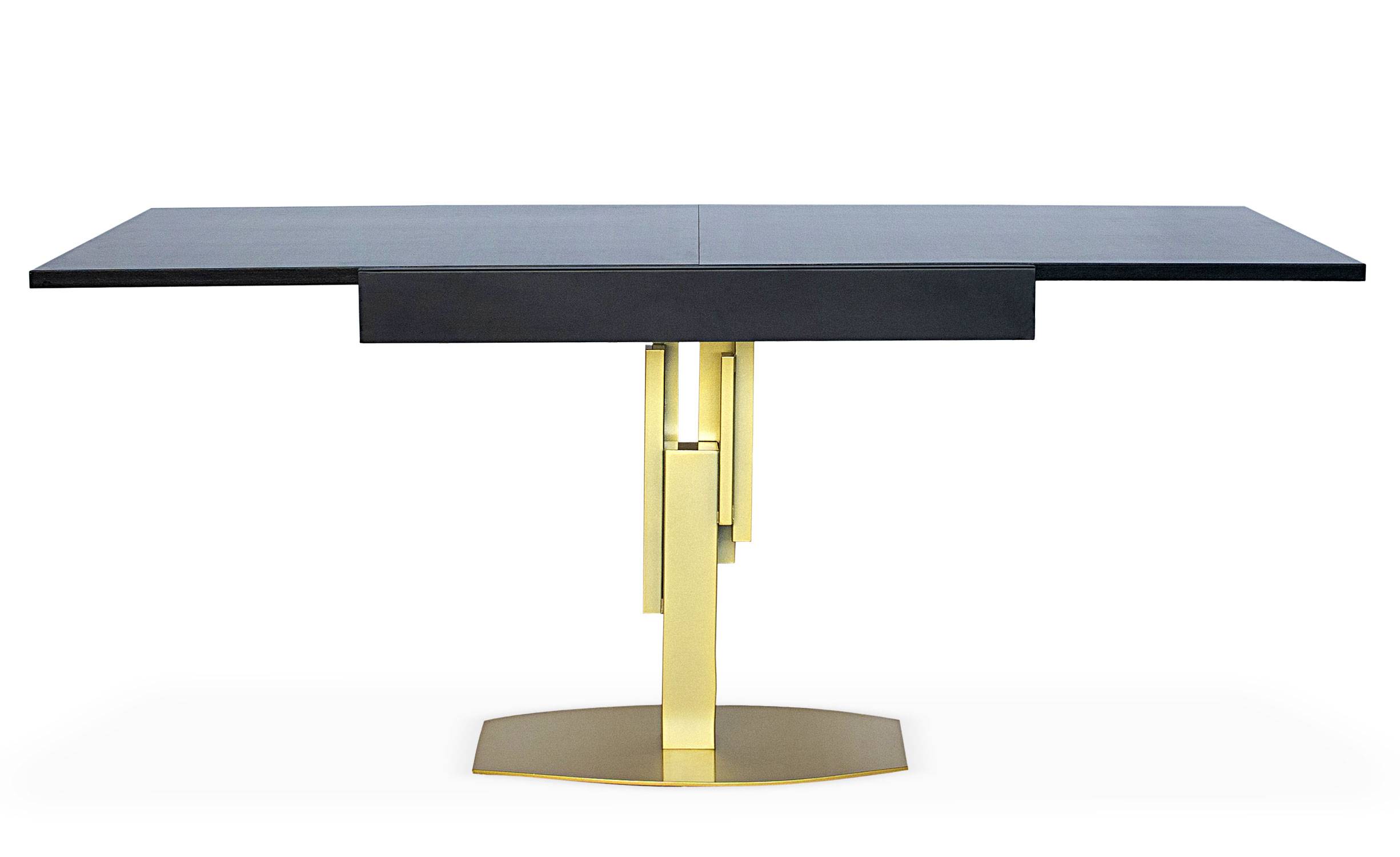 Table design carrée extensible 180cm Mealane pied central Or et Bois Noir