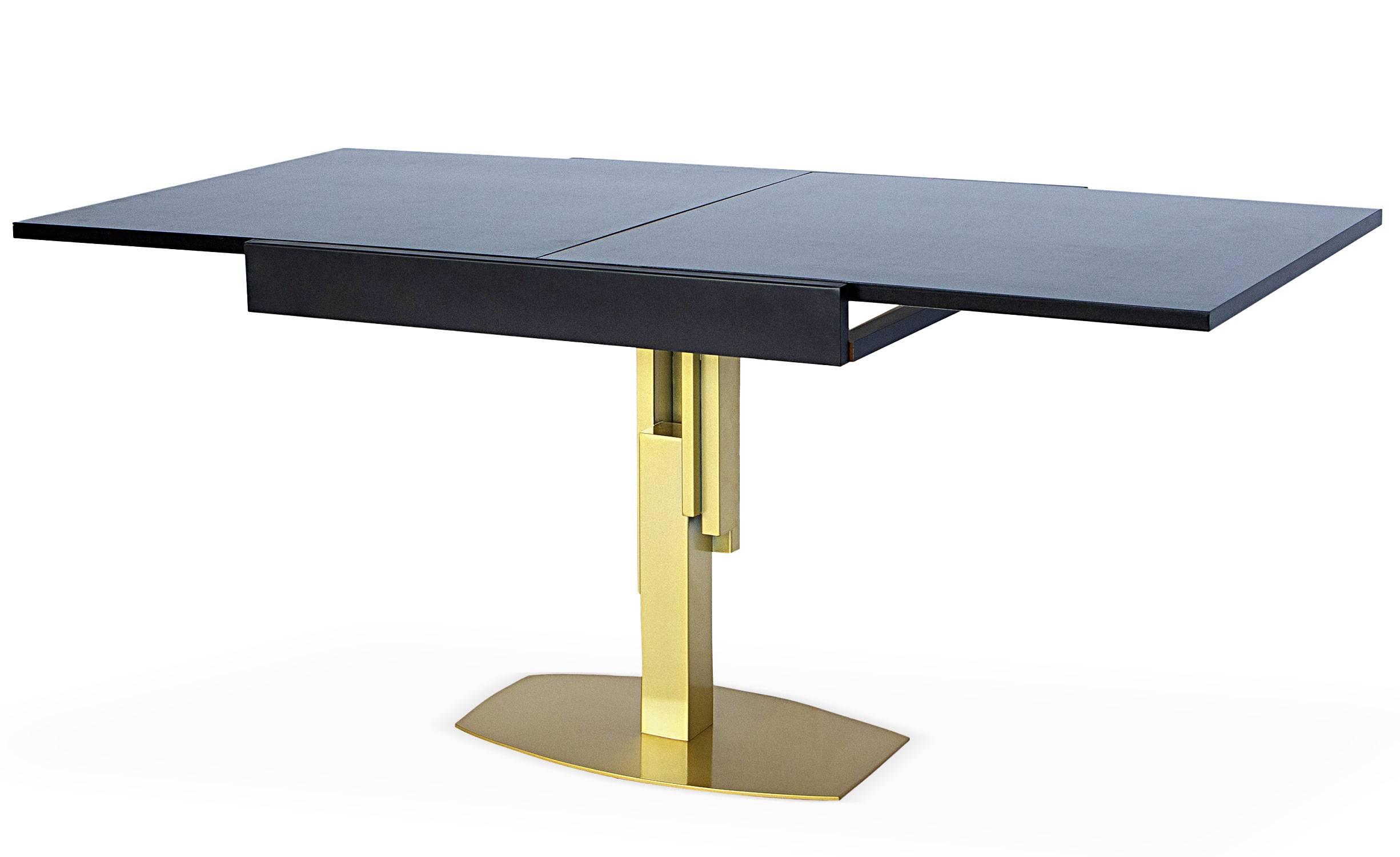 Libellé Table design carrée extensible 180cm Mealane pied central Or et Bois Noir