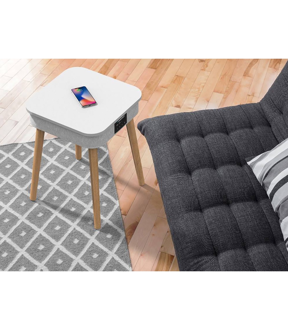 Cette table ne vous permet pas seulement d'écouter de la musique mais elle vous permet également de recharger votre smartphone ou encore tablette ou ordinateurs (pour appareil compatible induction) grâce à sa surface induction et sa batterie de 2600 mAh afin de pouvoir toujours rester connecté!