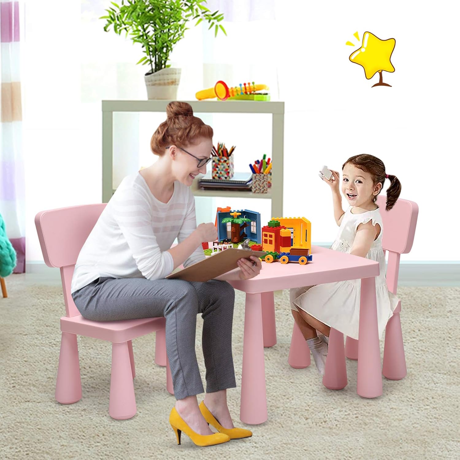 - Approfondir la relation parent-enfant : Avec la combinaison de l'ensemble table enfant et ses 2 chaises, les parents peuvent participer à toutes les étapes de la croissance de l'enfant, telles que: jeux, apprentissage, etc., pour créer une vraie camaraderie. Promouvoir les relations parents-enfants, valorisé l'harmonie familiale.