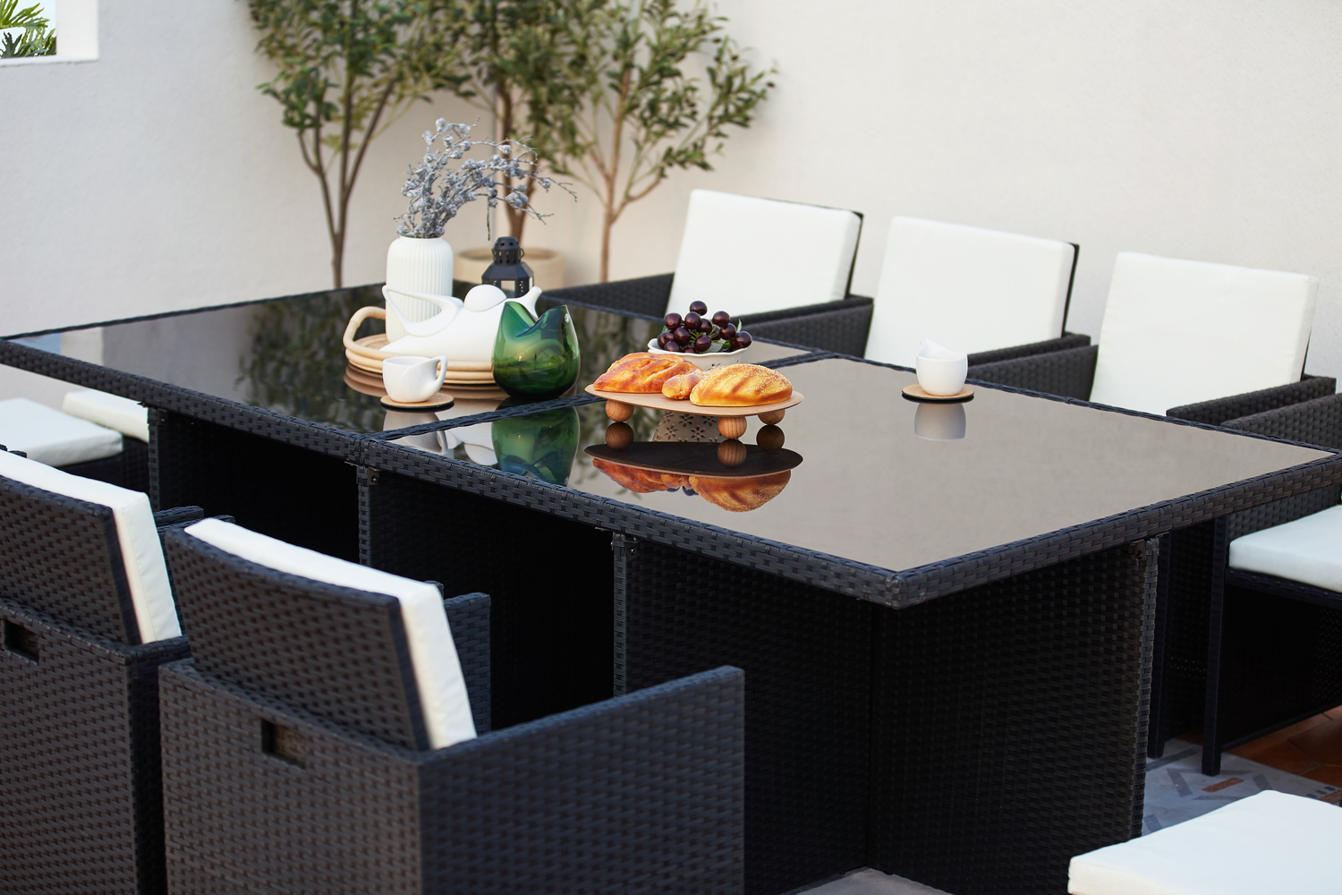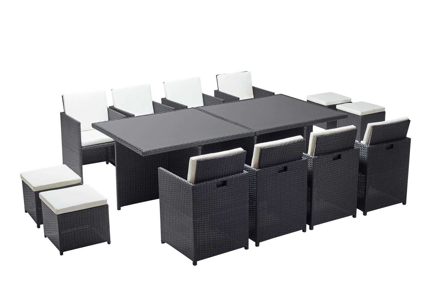 | Libellé | Table et chaises 12 places encastrables résine noir-blanc MONACO |