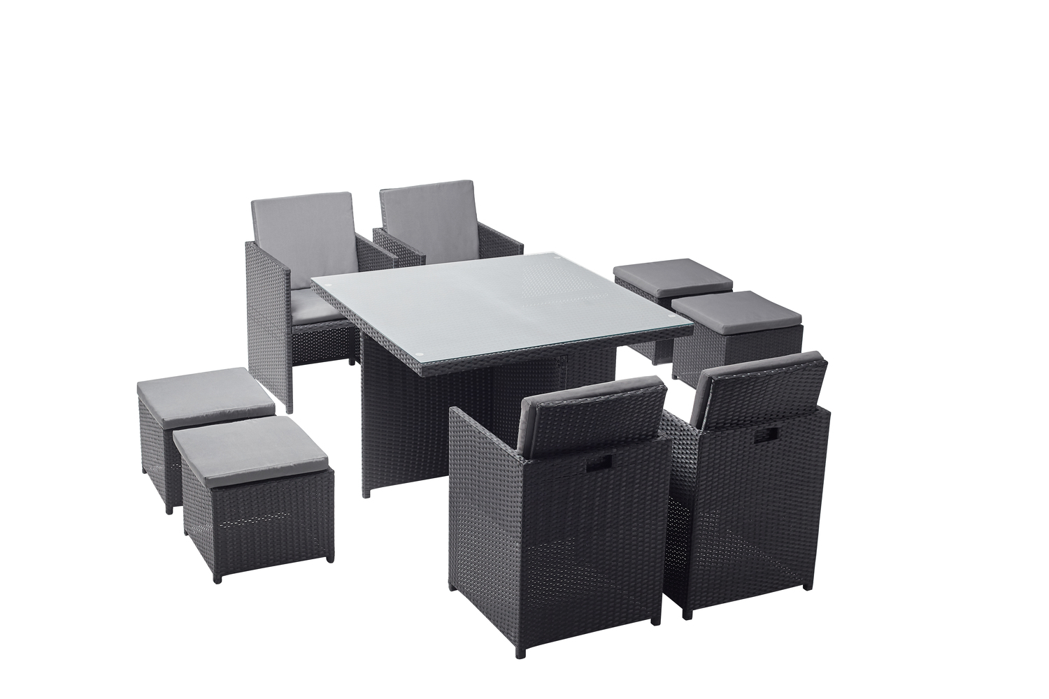 | Libellé | Table et chaises 8 places encastrables en résine noir-gris MONACO |