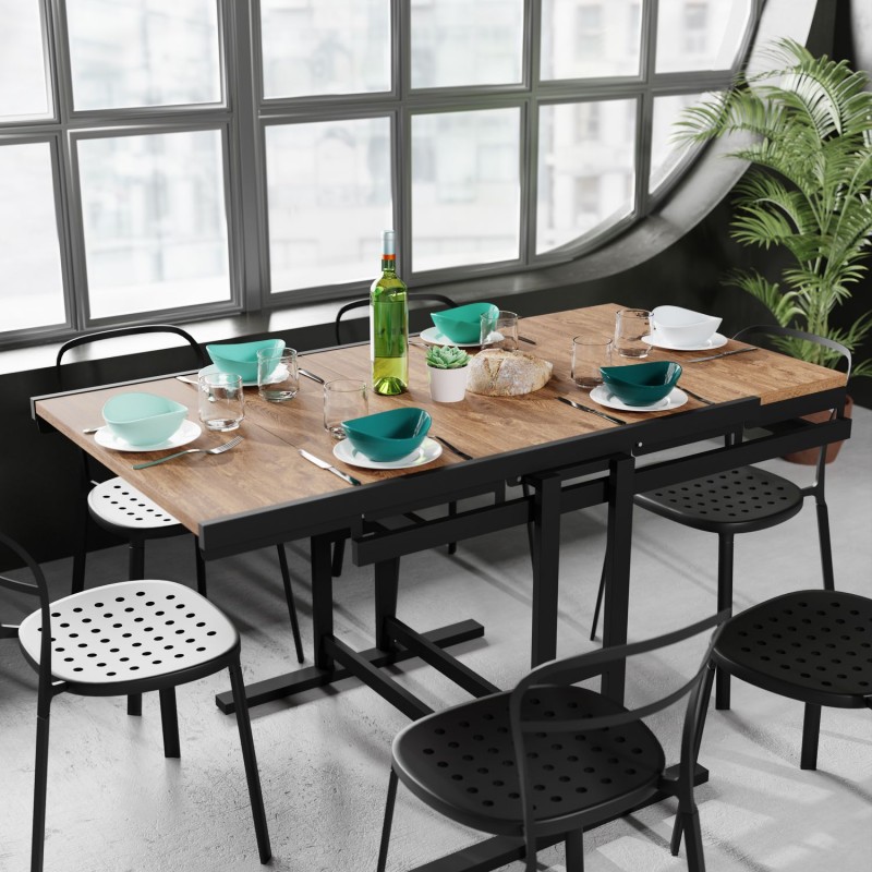 Aussi très pratique car facilement modulable, vous pouvez recevoir des amis à dîner et ainsi profiter d'une grande table pouvant accueillir jusqu'à 4 convives ou tout simplement avoir besoin d'un bureau pour une longue journée de travail à la maison.