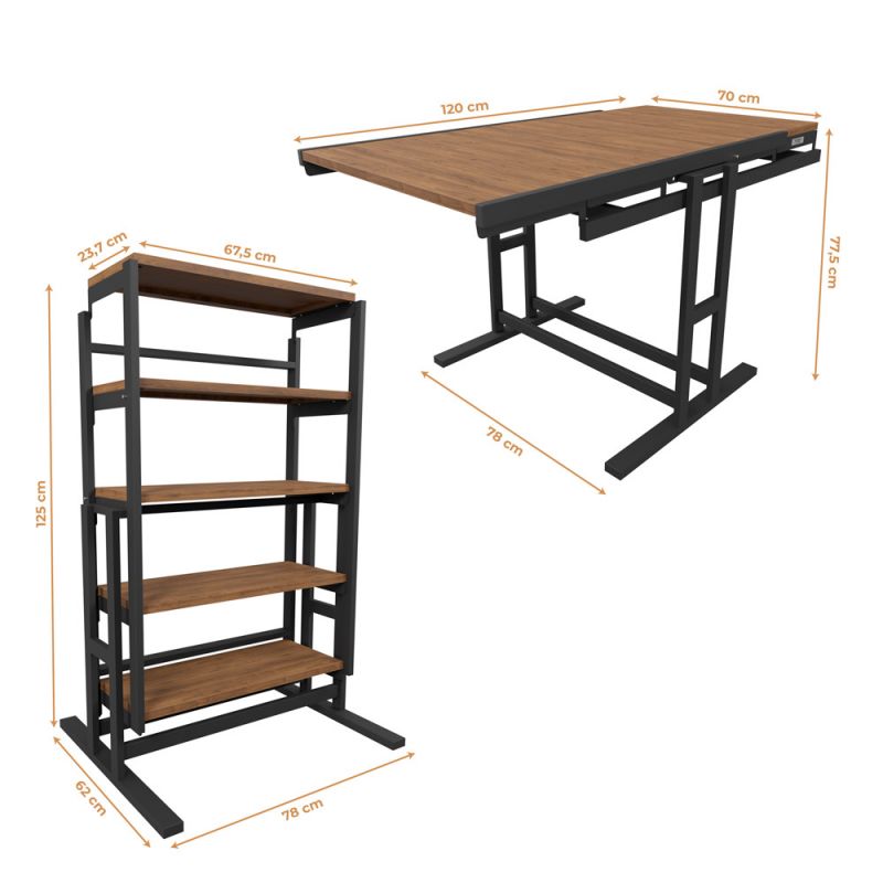 Une fois la table repliée, cela devient une étagère où vous pourrez y entreposer et mettre en valeur vos livres favoris, de la déco ou encore vos plus jolies plantes et cela sur ses 5 étages de rangement.